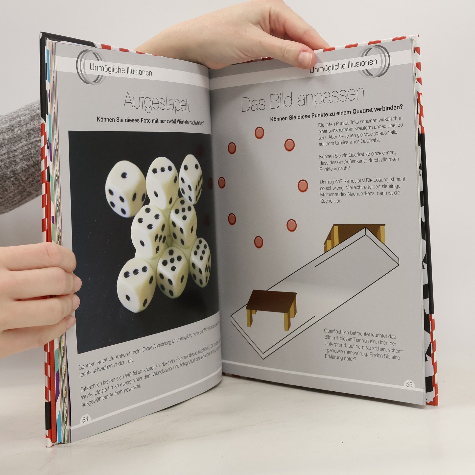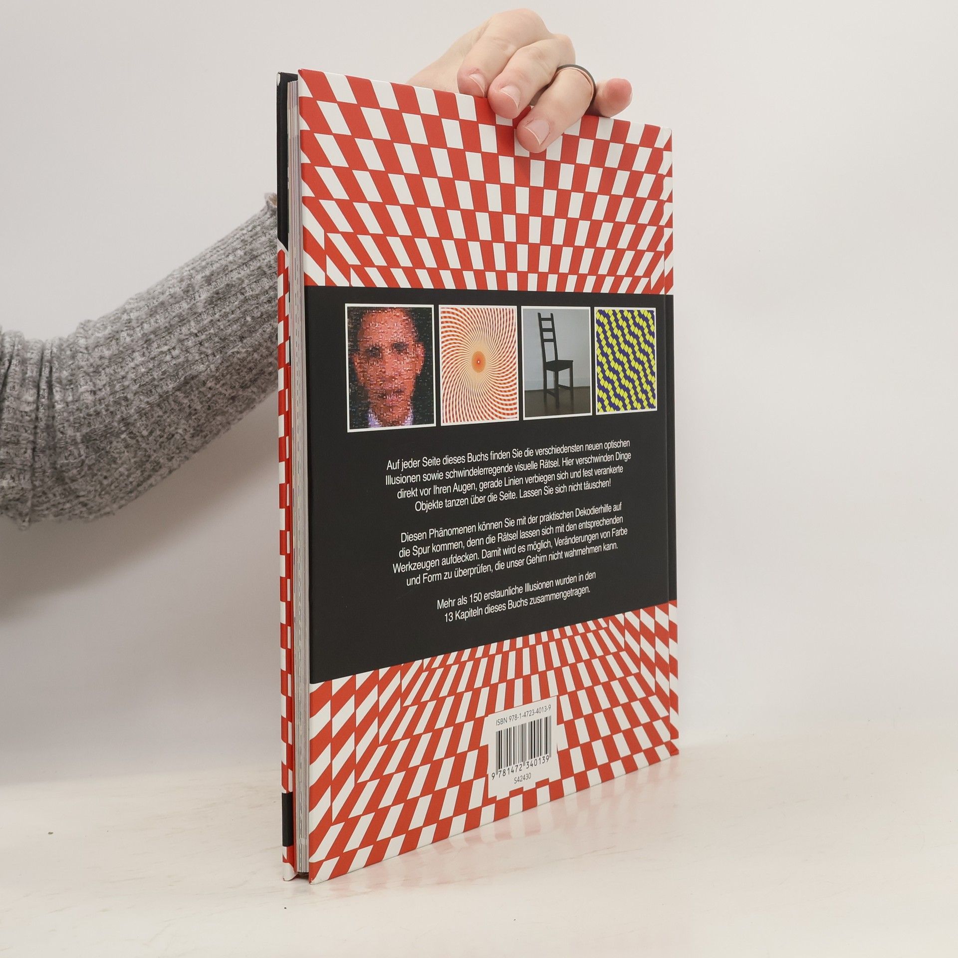 Lernen Sie die Grenzen der visuellen Wahrnehmung kennen - Mit praktischer Dekodierhilfe - Mehr als 150 erstaunliche Illusionen - Mit tollem 3D-Hologrammbild auf dem Cover Auf jeder Seite dieses Buchs finden Sie die verschiedensten neuen optischen Illusionen sowie schwindelerregende visuelle Rätsel. Hier verschwinden Dinge direkt vor Ihren Augen, gerade Linien verbiegen sich und fest verankerte Objekte tanzen über die Seite. Lassen Sie sich nicht täuschen! Diesen Phänomenen können Sie mit der praktischen Dekodierhilfe auf die Spur kommen, denn die Rätsel lassen sich mit den entsprechenden Werkzeugen aufdecken. Damit wird es möglich, Veränderungen von Farbe und Form zu überprüfen, die unser Gehirn nicht wahrnehmen kann. Mehr als 150 erstaunliche Illusionen wurden in den 13 Kapiteln dieses Buchs zusammengetragen.