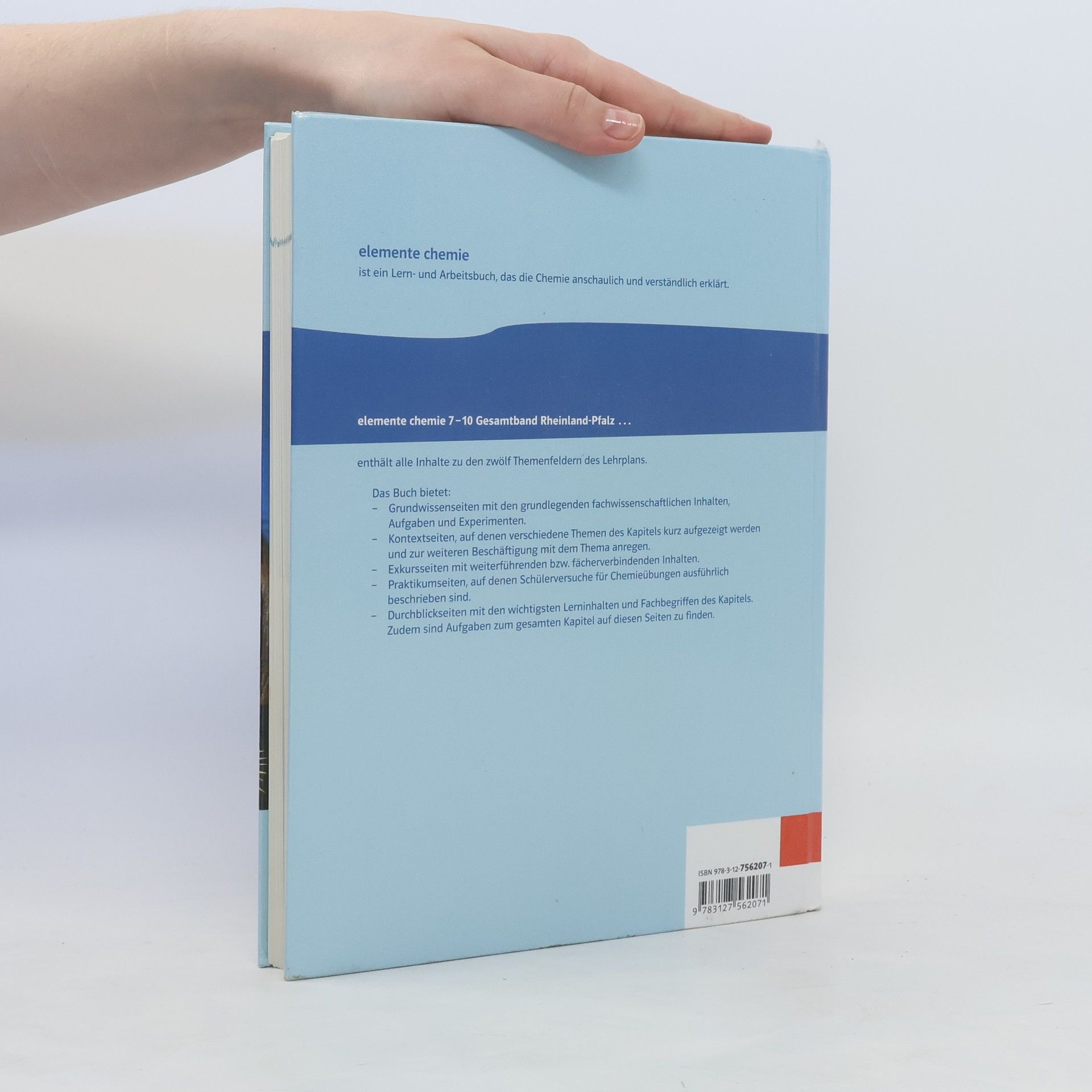Ein Schulbuch, das die Chemie anschaulich und verständlich erklärt. Neu zur Schulbuchausleihe 2016: Der Elemente Chemie Gesamtband (Klasse 7 bis 10) ist passgenau zum neuen Lehrplan für Rheinland-Pfalz. Dieses Schulbuch beinhaltet alle zwölf Themenfelder und deckt somit den kompletten Lehrplan in Chemie ab: Chemikers Vorstellungen von den Stoffen Von der Saline zum Kochsalz Heizen und antreiben Vom Erz zum Metall Sauber und schön Säuren und Laugen Schöne neue Kunststoffwelt Vom Reagenzglas zum Reaktor Den Stoffen auf der Spur Gefährliche Stoffe Stoffe im Fokus von Umwelt und Klima Mobile Energieträger Ein umfassendes Angebot für Ihren Unterricht – Sie brauchen keine weiteren Materialien.Alternativ können Sie auch mit den neuen Elemente Chemie Arbeitsbüchern unterrichten (siehe unten).