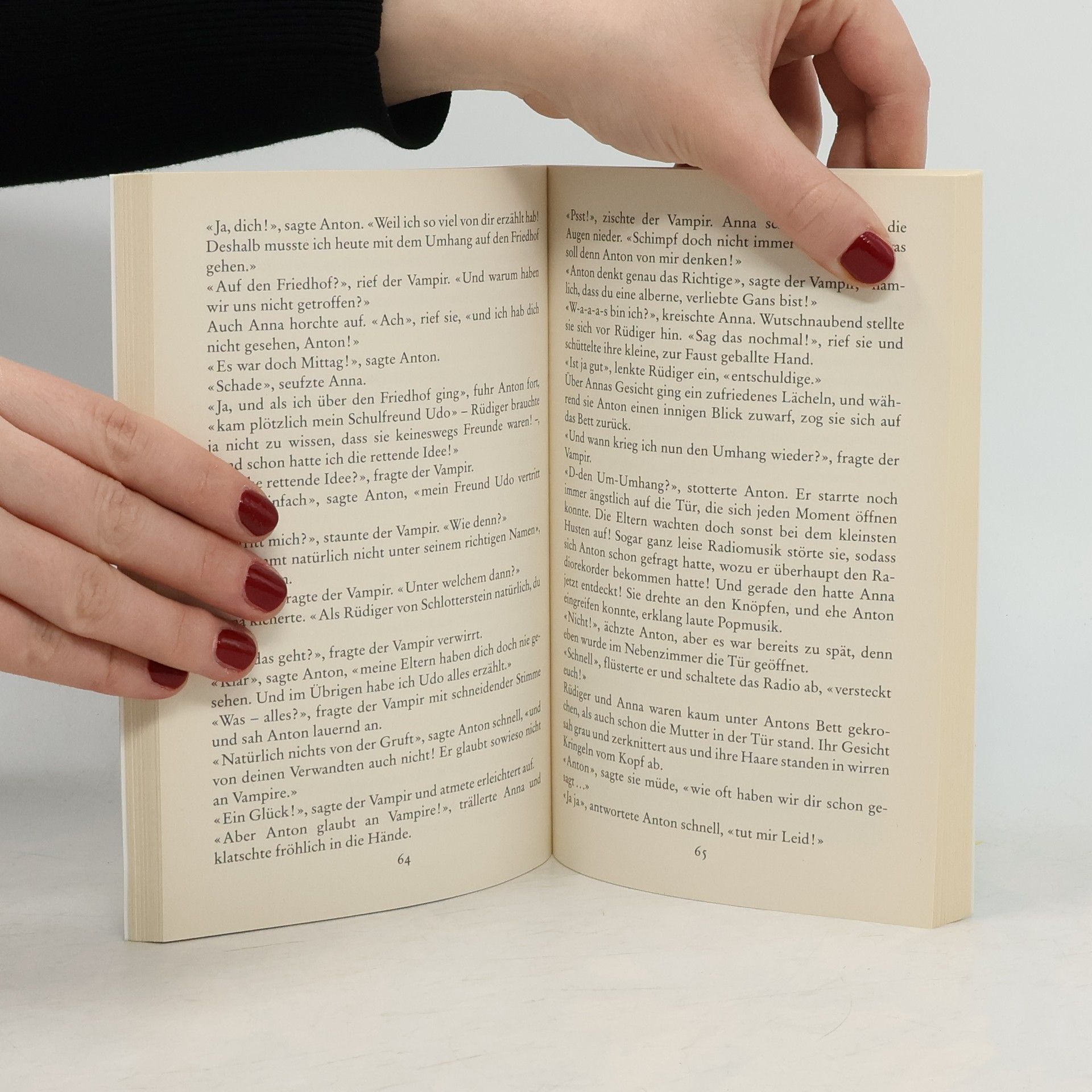 Anton liest für sein Leben gern Gruselgeschichten –– vor allem über Vampire. Von einem Vampir wie Rüdiger aber hat Anton noch nie gehört. Ein richtig netter Vampir ist das. Wenn bloß seine Eltern nicht so neugierig wären. Wie soll Anton ihnen erklären, warum sein neuer Freund nie den schäbigen schwarzen Umhang ablegt, immerzu eine Hand vor den Mund hält und dazu noch so merkwürdig riecht?Die berühmte Serie von Angela Sommer-Bodenburg mit Zeichnungen von Amelie Glienke.