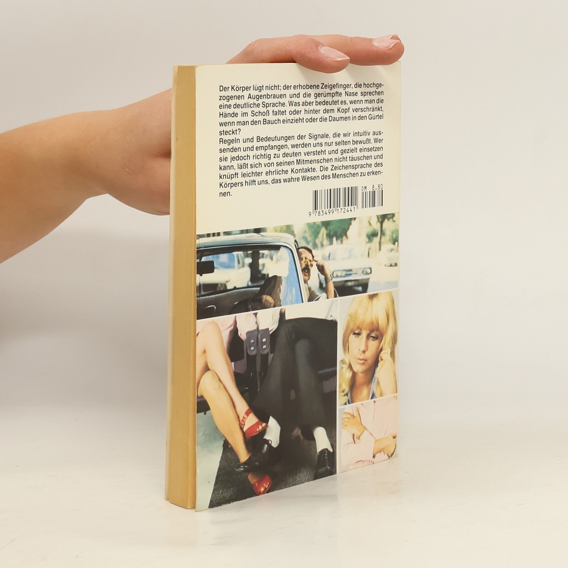 Der Körper lügt nicht; der erhobene Zeigefinger, die hochgezogenen Augenbrauen und die gerümpfte Nase sprechen eine deutliche Sprache. Was aber bedeutet es, wenn man die Hände im Schoß faltet oder hinter dem Kopf verschränkt, wenn man den Bauch einzieht oder die Daumen in den Gürtel steckt? Regeln und Bedeutungen der Signale, die wir intuitiv aussenden und empfangen, werden uns nur selten bewußt. Wer sie jedoch richtig zu deuten versteht und gezielt einsetzen kann, läßt sich von seinen Mitmenschen nicht täuschen und knüpft leichter ehrliche Kontakte.