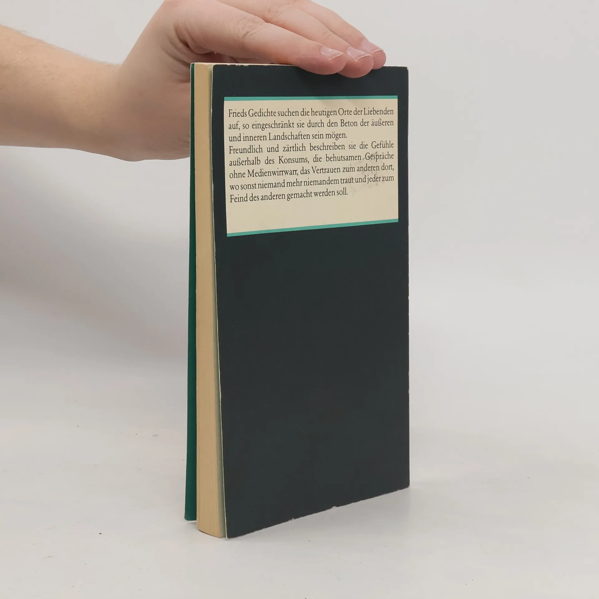 Wo es Abschiede und Trennungen gibt, gibt es auch Liebe und Nähe. Frieds Gedichte suchen diese heutigen Orte der Liebenden auf, so eingeschränkt sie durch den Beton der äußeren und inneren Landschaften sein mögen. Freundlich, zärtlich, manchmal heiter, manchmal ernst, aber nicht ohne Selbstironie beschreibt Erich Fried die Gefühle, Verwirrungen und Leidenschaften, die jeder Liebende kennt. Mit den »Liebesgedichten« ist Erich Fried längst zum meistgelesenen deutschsprachigen Lyriker seit Brecht geworden. Erich Fried ist beides: ein Klassiker der deutschen Nachkriegsliteratur und ein von jungen Lesern immer wieder neu entdeckter Autor.