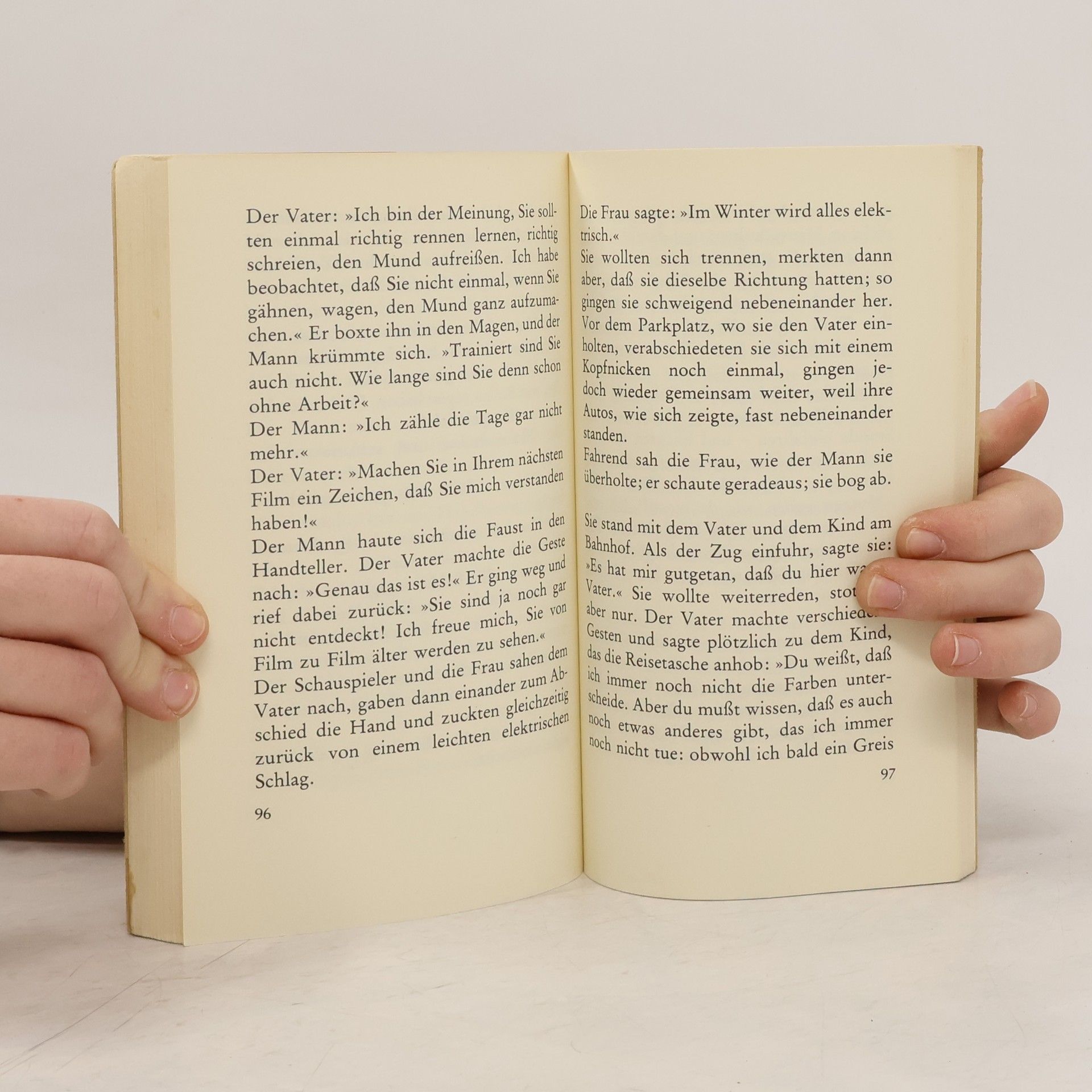 Sie war dreißig Jahre alt und lebte in einer terrassenförmig angelegten Bungalowsiedlung am südlichen Abhang eines Mittelgebirges, gerade über dem Dunst einer großen Stadt. Sie hatte Augen, die, auch wenn sie niemand anschaute, manchmal anschaute, manchmal aufstrahlten, ohne daß ihr Gesicht sich sonst veränderte.
