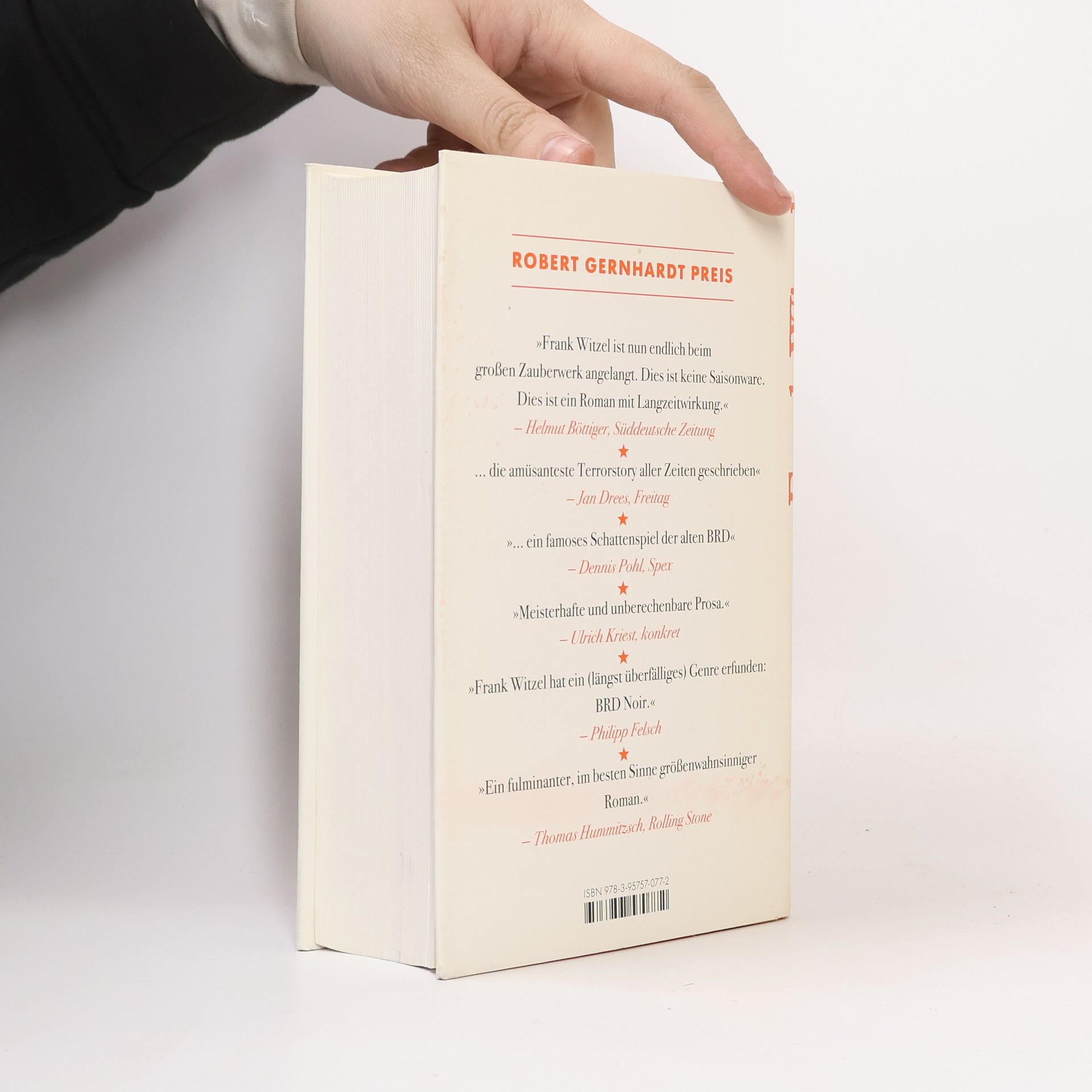 Gudrun Ensslin eine Indianersquaw aus braunem Plastik und Andreas Baader ein Ritter in schwarzglänzender Rüstung? Die Welt des kindlichen Erzählers dieses mitreißenden Romans, der den Kosmos der alten BRD wiederauferstehen lässt, ist nicht minder real als die politischen Ereignisse, die jene Jahre in Atem halten und auf die sich der 13-Jährige seinen ganz eigenen Reim macht. Frank Witzel ist es in dieser groß angelegten fantastischen literarischen Rekonstruktion des westlichen Teils Deutschlands gelungen, ein Spiegelkabinett der Geschichte im Kopf eines Heranwachsenden zu errichten. Erinnerungen an das Nachkriegsdeutschland, Ahnungen vom Deutschen Herbst und Betrachtungen der aktuellen Gegenwart entrücken ihn dabei immer weiter seiner Umwelt. Das dichte Erzählgewebe ist eine explosive Mischung aus Geschichten und Geschichte, Welterklärung, Reflexion und Fantasie: ein detailbesessenes Kaleidoskop aus Stimmungen einer Welt, die ebenso wie die DDR 1989 Geschichte wurde.