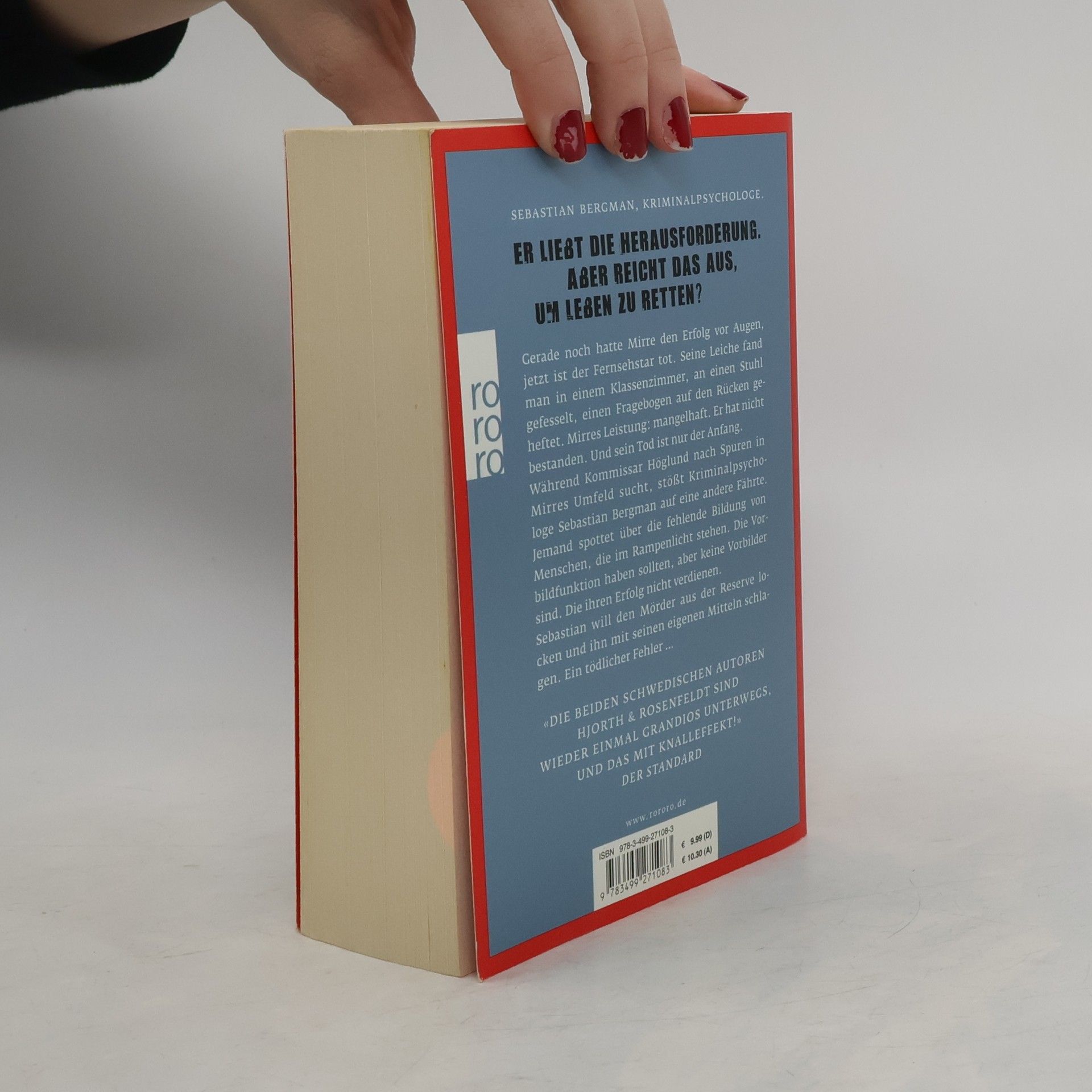Sebastian Bergman. Kriminalpsychologe.Er ist hochintelligent. Er liebt die Herausforderung.Aber reicht das aus, um Leben zu retten?Gerade noch hatte Mirre den Erfolg vor Augen, jetzt ist der Fernsehstar tot. Hingerichtet, mit einem Bolzenschuss in den Kopf. Seine Leiche findet man in einem Klassenzimmer, an einen Stuhl gefesselt, einen Fragebogen auf den Rücken geheftet. Mirres Leistung: mangelhaft. Er hat nicht bestanden. Und sein Tod ist nur der Anfang. Während Kommissar Höglund von der Reichsmordkommission nach Spuren in Mirres Umfeld sucht, stößt Kriminalpsychologe Sebastian Bergman auf eine andere Fährte. Jemand spottet über die fehlende Bildung von Menschen, die im Rampenlicht stehen. Die Vorbildfunktion haben sollten, aber keine Vorbilder sind. Die ihren Erfolg nicht verdienen. Sebastian will den Mörder aus der Reserve locken und ihn mit seinen eigenen Mitteln schlagen. Ein tödlicher Fehler …