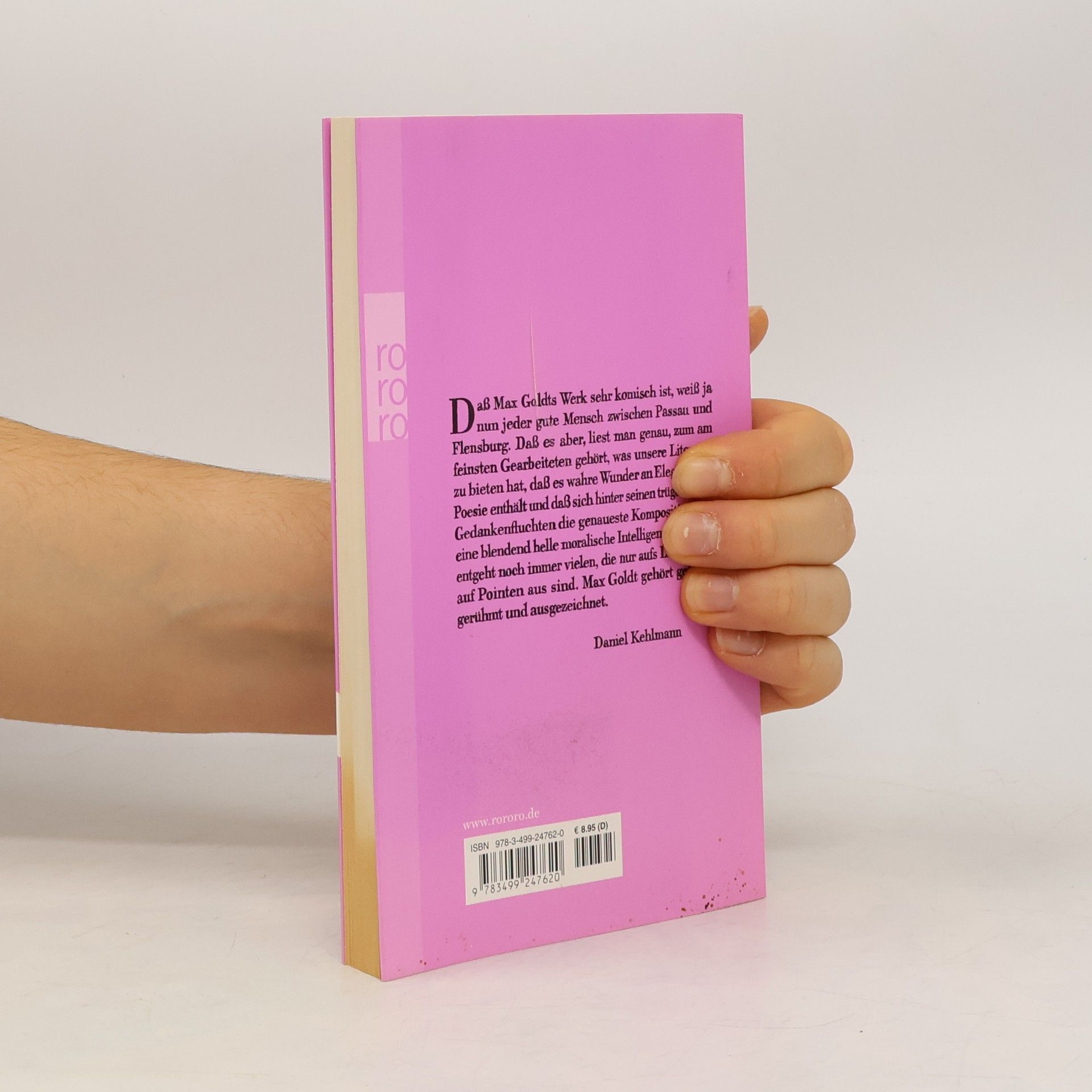 »Daß Max Goldts Werk sehr komisch ist, weiß ja nun jeder gute Mensch zwischen Passau und Flensburg. Daß es aber, liest man genau, zum am feinsten Gearbeiteten gehört, was unsere Literatur zu bieten hat, dass es wahre Wunder an Eleganz und Poesie enthält und dass sich hinter seinen trügerischen Gedankenfluchten die genaueste Komposition und eine blendend helle moralische Intelligenz verbergen, entgeht noch immer vielen, die nur aufs Lachen und auf Pointen aus sind. Max Goldt gehört gelesen, gerühmt und ausgezeichnet.« (Daniel Kehlman)