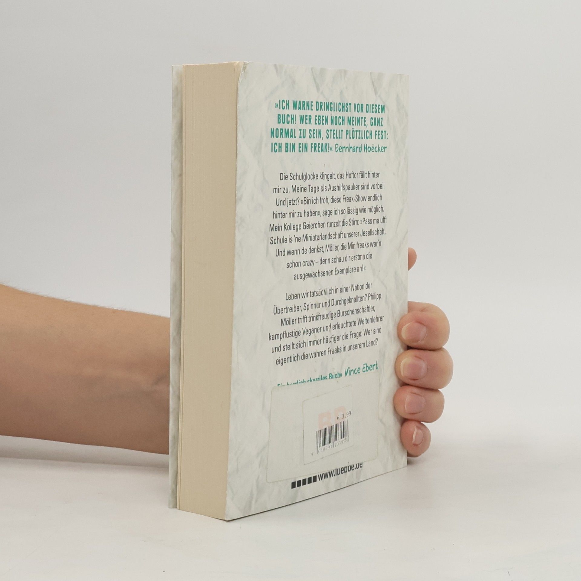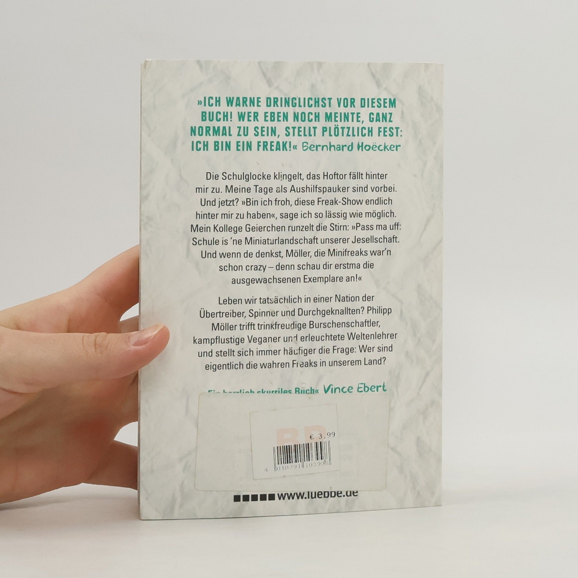 Die Schulglocke klingelt, das Hoftor fällt hinter mir zu. Meine Tage als Aushilfspauker sind vorbei. Und jetzt? »Bin ich froh, diese Freak-Show endlich hinter mir zu haben«, sage ich so lässig wie möglich. Mein Kollege Geierchen runzelt die Stirn: »Pass ma uff: Schule is ’ne Miniaturlandschaft unserer Jesellschaft. Und wenn de denkst, Möller, die Minifreaks war’n schon crazy - denn schau dir erstma die ausgewachsenen Exemplare an!« Leben wir tatsächlich in einer Nation der Übertreiber, Spinner und Durchgeknallten? Philipp Möller trifft trinkfreudige Burschenschaftler, kampflustige Veganer und erleuchtete Weltenlehrer und stellt sich immer häufiger die Frage: Wer sind eigentlich die wahren Freaks in unserem Land?