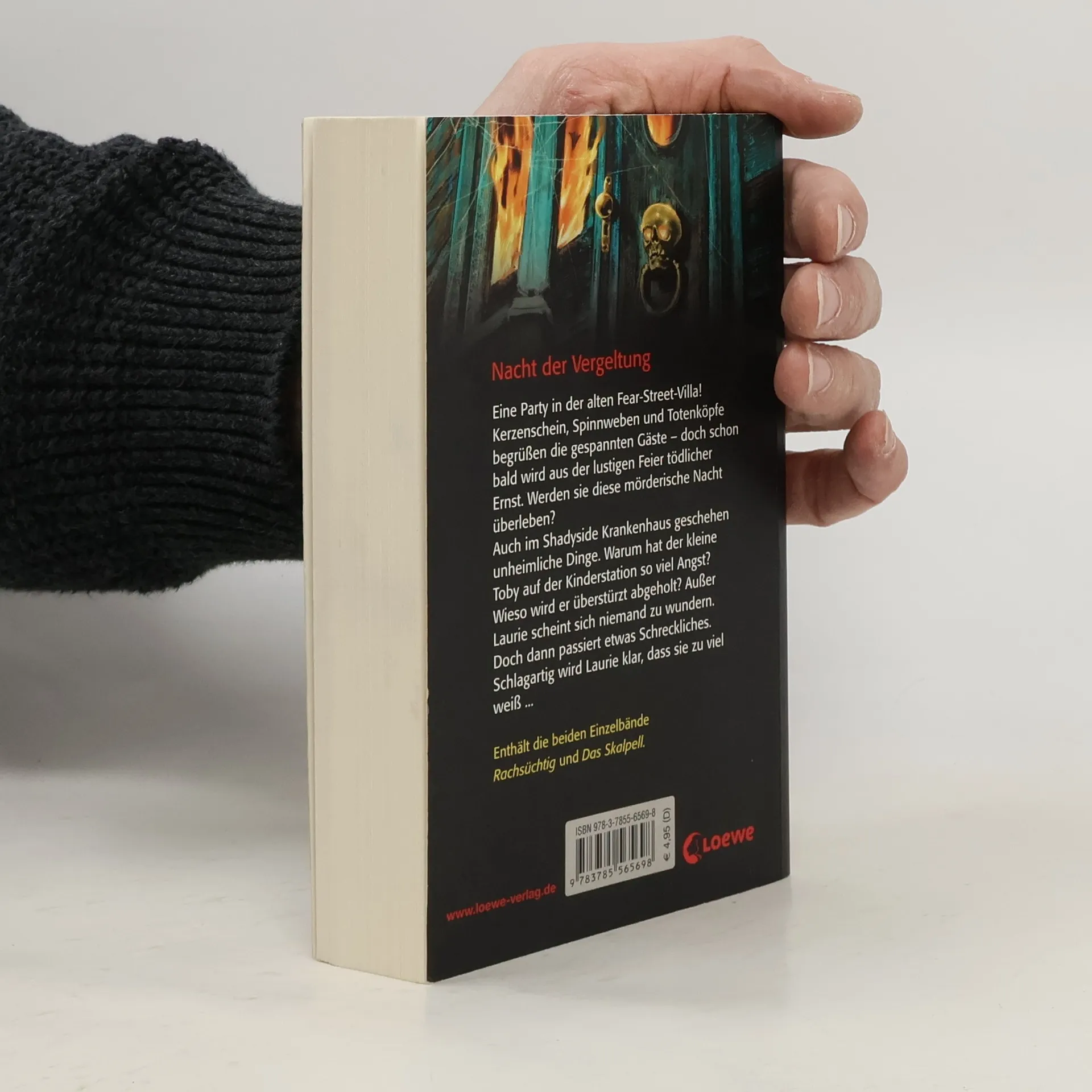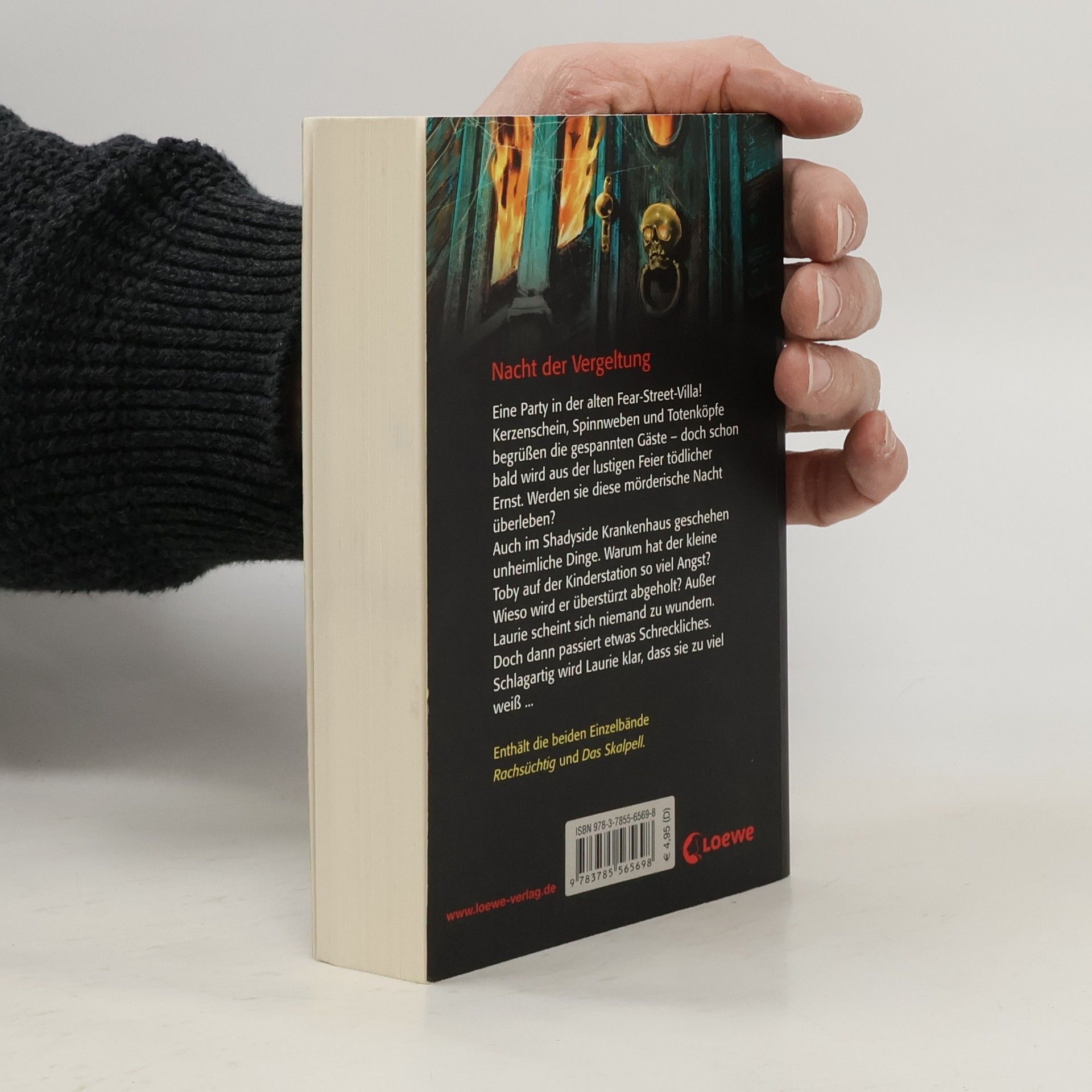 Eine Party in der alten Fear Street Villa! Kerzenschein, Spinnenweben und Totenköpfe begrüßen die gespannten Gäste – doch schon bald wird aus der lustigen Feier tödlicher Ernst. Werden sie diese mörderische Nacht überleben? Auch im Shadyside Krankenhaus geschehen unheimliche Dinge. Warum hat der kleine Toby auf der Kinderstation so viel Angst? Wieso wird er überstürzt abgeholt? Außer Laurie scheint sich niemand zu wundern. Doch dann passiert etwas Schreckliches. Schlagartig wird Laurie klar, dass sie zu viel weiß. Enthält die beiden Einzelbände „Rachsüchtig“ und „Das Skalpell“.