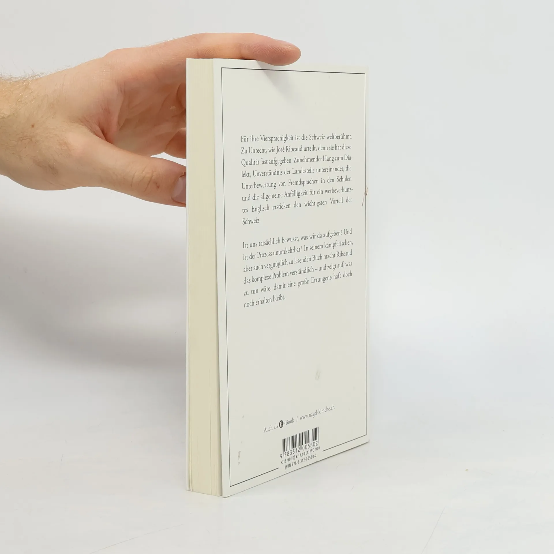 Für ihre Viersprachigkeit ist die Schweiz weltberühmt. Zu Unrecht, wie José Ribeaud urteilt, denn sie hat diese Qualität fast aufgegeben. Zwang zum Dialekt, Unverständnis der Landesteile untereinander, Fremdsprachenignoranz in Bildung und Schule sowie die allgemeine Anfälligkeit für ein werbeverhunztes Englisch ersticken den wichtigsten Vorteil der Schweiz. Ribeaud, der als Korrespondent jahrzehntelang aus den Bereichen Kultur, Politik und Gesellschaft der Deutschschweiz in seine welsche Heimat berichtete, zeichnet ein schonungsloses Bild der Lage – sein Buch ist eine Kampfschrift, deren Lektüre aufrüttelt und die die Diskussion darüber, wie dieser einzigartige Vorteil zu retten sei, neu entfacht.