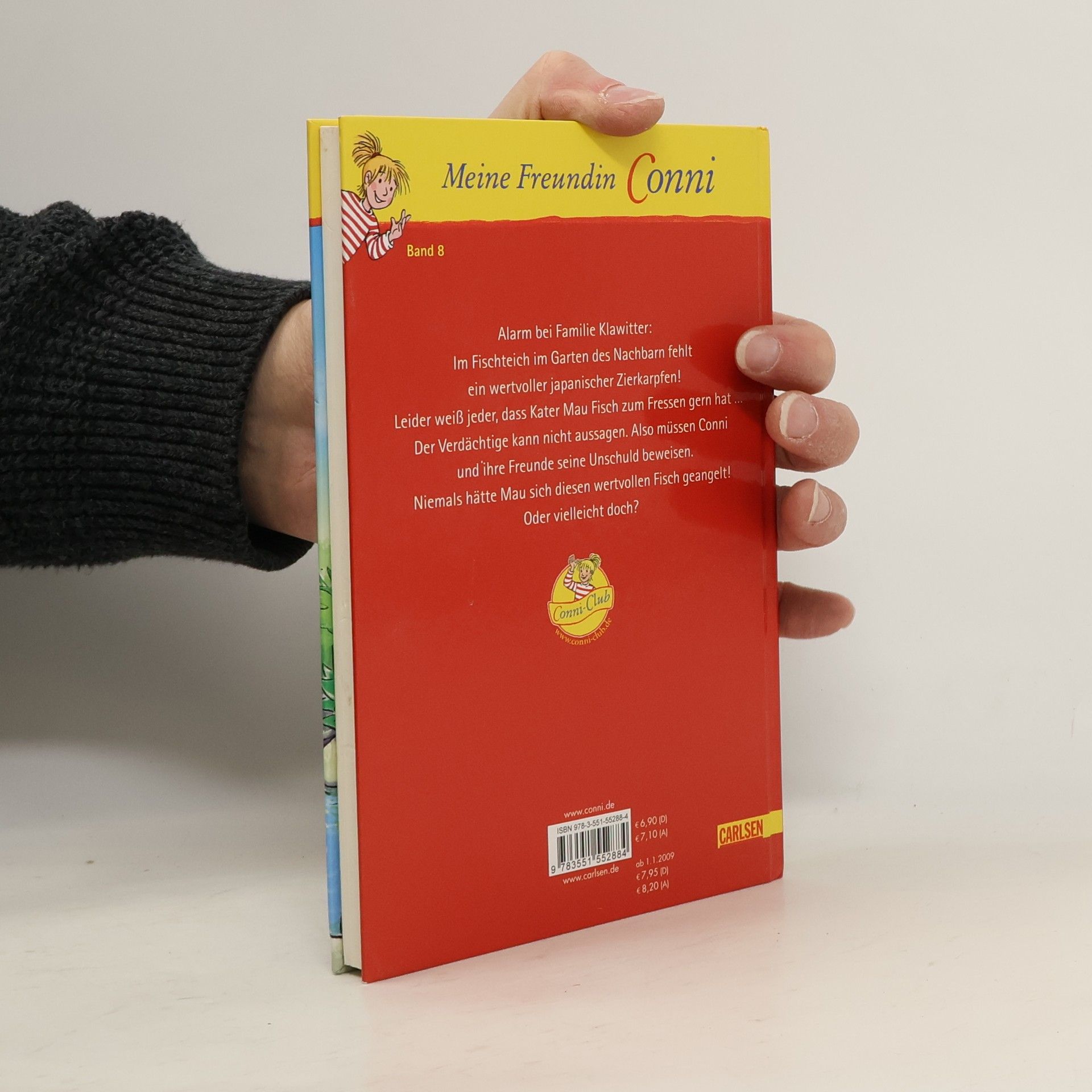 Alarm bei Familie Klawitter: Im Fischteich im Garten des Nachbarn fehlt ein wertvoller japanischer Zierkarpfen. Leider weiß jeder, dass Kater Mau Fisch zum Fressen gern hat. Der Verdächtige kann nicht aussagen. Also müssen Conni und ihre Freunde seine Unschuld beweisen. Niemals hätte Mau sich diesen wertvollen Fisch geangelt! Oder vielleicht doch?