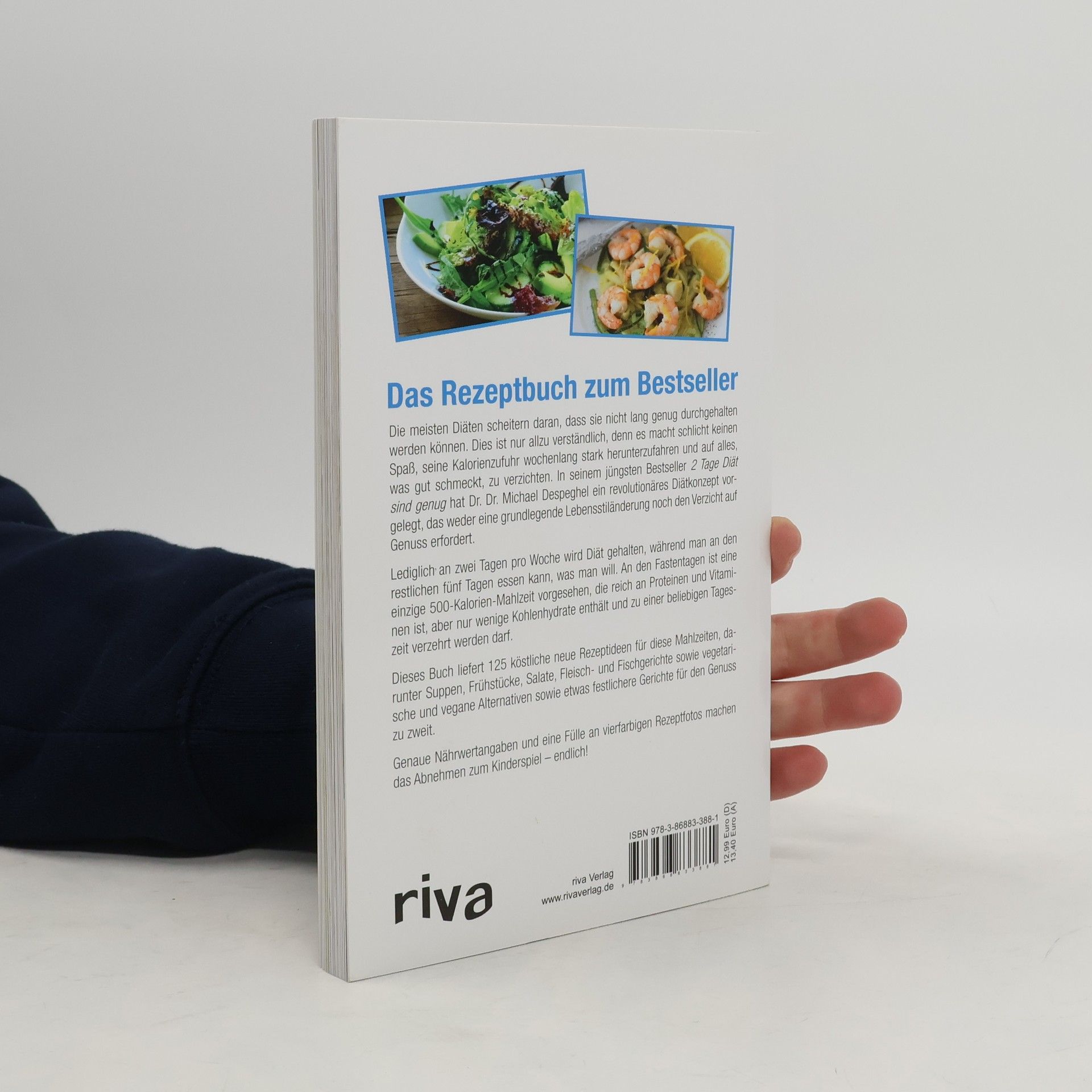 Kaum erschienen, schoss Dr. Dr. Michael Despeghels Abnehmratgeber 2 Tage Diät sind genugauf Platz 1 bei Amazon. de. Das revolutionäre neue Konzept, das nur zwei Diättage pro Woche vorsieht, während man an den restlichen fünf Tagen essen kann, was man will, und leben wie bisher, trifft den Nerv der Zeit. Viele Menschen leiden nicht nur an Übergewicht, sondern auch an akutem Zeitmangel und möchten weder ihren Lebensstil grundlegend ändern noch hungern oder auf Genuss verzichten. In der neuen Diät ist an den Fastentagen eine 500-Kalorien-Mahlzeit vorgesehen, die reich an Proteinen und Vitaminen ist, aber nur wenige Kohlenhydrate enthält. Dieses Buch liefert 115 köstliche neue Rezepte für diese Fastentage, unterteilt in die Rubriken Suppen, Brunch, Salate, Geflügel, Fleisch, Fisch, vegetarisch, vegan und »für zwei«. Genaue Nährwertangaben und eine Fülle an vierfarbigen Rezeptfotos bereichern das Buch und machen das Abnehmen zum Kinderspiel – endlich!