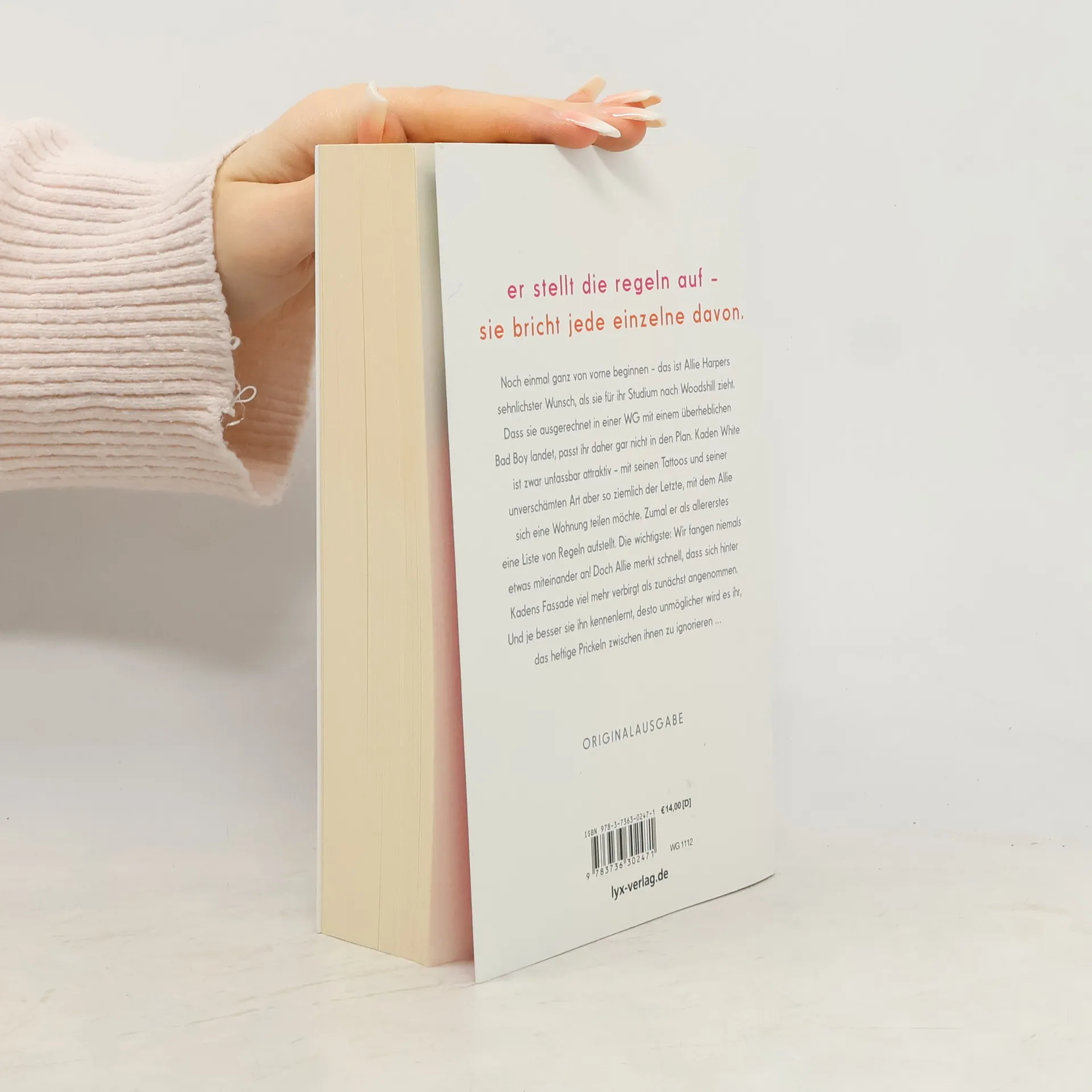 Er stellt die Regeln auf - sie bricht jede einzelne davon. Noch einmal ganz von vorne beginnen - das ist Allie Harpers sehnlichster Wunsch, als sie für ihr Studium nach Woodshill zieht. Dass sie ausgerechnet in einer WG mit einem überheblichen Bad Boy landet, passt ihr daher gar nicht in den Plan. Kaden White ist zwar unfassbar attraktiv - mit seinen Tattoos und seiner unverschämten Art aber so ziemlich der Letzte, mit dem Allie sich eine Wohnung teilen möchte. Zumal er als allererstes eine Liste von Regeln aufstellt. Die wichtigste: Wir fangen niemals etwas miteinander an! Doch Allie merkt schnell, dass sich hinter Kadens Fassade viel mehr verbirgt als zunächst angenommen. Und je besser sie ihn kennenlernt, desto unmöglicher wird es ihr, das heftige Prickeln zwischen ihnen zu ignorieren ... „Lache, weine und verliebe dich. Mona Kasten hat ein Buch geschrieben, das man nicht aus der Hand legen kann!“ ANNA TODD über „Begin Again“ Der Auftaktband der „Again“-Reihe von Platz-1-SPIEGEL-Bestseller-Autorin Mona Kasten