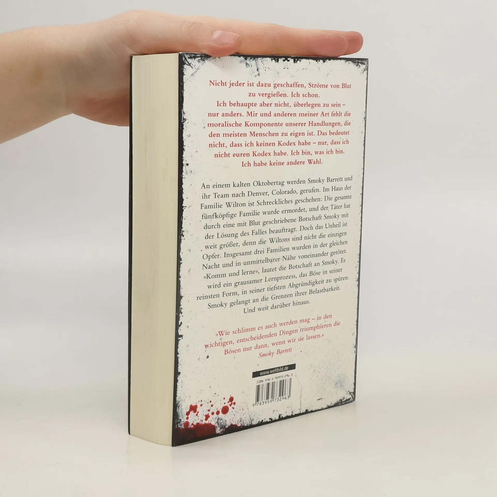 Smoky Barrett ist zurück An einem kalten Oktobertag werden Smoky Barrett und ihr Team nach Denver, Colorado, gerufen. Im Haus der Familie Wilton ist Schreckliches geschehen: Die gesamte fünfköpfige Familie wurde ermordet, und der Täter hat durch eine mit Blut geschriebene Botschaft Smoky mit der Lösung des Falles beauftragt. Doch das Unheil ist weit größer, denn die Wiltons sind nicht die einzigen Opfer. Insgesamt drei Familien wurden in der gleichen Nacht und in unmittelbarer Nähe voneinander getötet. „Komm und lerne“, lautet die Botschaft an Smoky. Es wird ein grausamer Lernprozess, das Böse in seiner reinsten Form, in seiner tiefsten Abgründigkeit zu spüren. Smoky gelangt an die Grenzen ihrer Belastbarkeit. Und weit darüber hinaus. Nach Ausgelöscht und Das Böse in uns der neue Psychothriller aus der Smoky Barrett-Reihe von Cody Mcfadyen - Hochspannung mit Gänsehaut-Potenzial!.