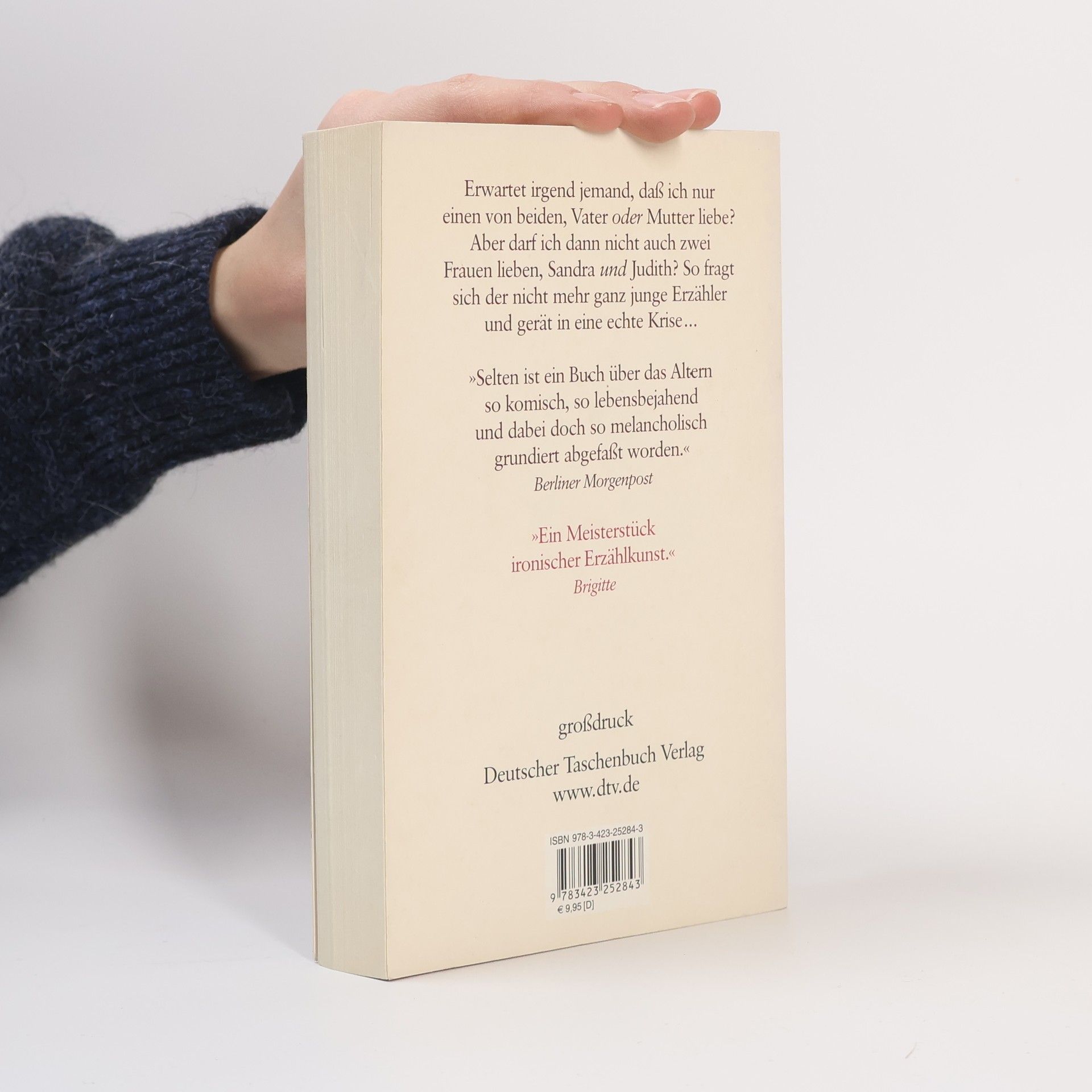 Von den Mühen mit der Liebe und dem Leben. Eigentlich ist alles perfekt. Lange schon lebt der freischaffende Apokalypse-Spezialist eine wunderbare Ménage à trois, in der die beiden völlig unterschiedlichen Frauen nichts voneinander ahnen. Nun schleicht sich aber das Alter an den Liebhaber heran. Er fühlt sich zunehmend überfordert von dieser »Polygamie in drei Wohnungen«. Und auf einmal entdeckt er Krampfadern, bemerkt ein Zucken des Augenlids, und auch beim Sex stellen sich Probleme ein: mal ein vorzeitiger Samenerguß, mal eine nachlassende Erektion. Mann und Männlichkeit zeigen sich alarmiert. Was, wenn die sexuelle Kraft versiegt, wenn gar ein Krankenhausaufenthalt unvermeidlich ist und Sandra und Judith an seinem Krankenbett zusammentreffen? Während der Experte für das Ausweglose bei einem Seminar in eindrucksvoller Schweizer Bergwelt seinen Zuhörern gewohnheitsmäßig den Ruin der Gegenwartsgesellschaft prophezeit, reift in ihm der Entschluß: Er muß die Verhältnisse klären und sich von einer trennen. Nur: von welcher? Sandra? Oder doch Judith? Wie Klarheit finden? Die Entscheidung, durch die sein Leben eigentlich leichter werden sollte, macht es nur noch auswegloser.