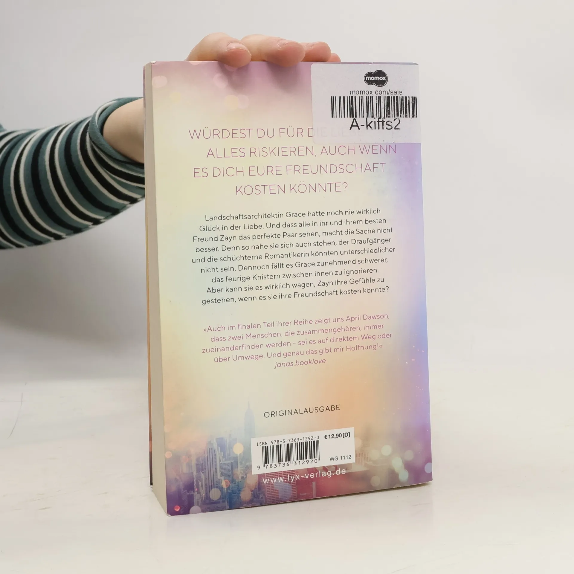 Würdest du für die Liebe alles riskieren, auch wenn es dich eure Freundschaft kosten könnte? Landschaftsarchitektin Grace hatte noch nie wirklich Glück in der Liebe. Und dass alle in ihr und ihrem besten Freund Zayn das perfekte Paar sehen, macht die Sache nicht besser. Denn so nahe sie sich auch stehen, der Draufgänger und die schüchterne Romantikerin könnten unterschiedlicher nicht sein. Dennoch fällt es Grace zunehmend schwerer, das prickelnde Knistern zwischen ihnen zu ignorieren. Aber kann sie es wirklich wagen, Zayn ihre Gefühle zu gestehen, wenn es sie ihre Freundschaft kosten könnte? „Auch im finalen Teil ihrer Reihe zeigt uns April Dawson, dass zwei Menschen, die zusammengehören, immer zueinanderfinden werden - sei es auf direktem Weg oder über Umwege. Und genau das gibt mir Hoffnung!“ JANAS. BOOKLOVE Band 3 der romantisch-leichten UP-ALL-NIGHT -Reihe von Bestseller-Autorin April Dawson