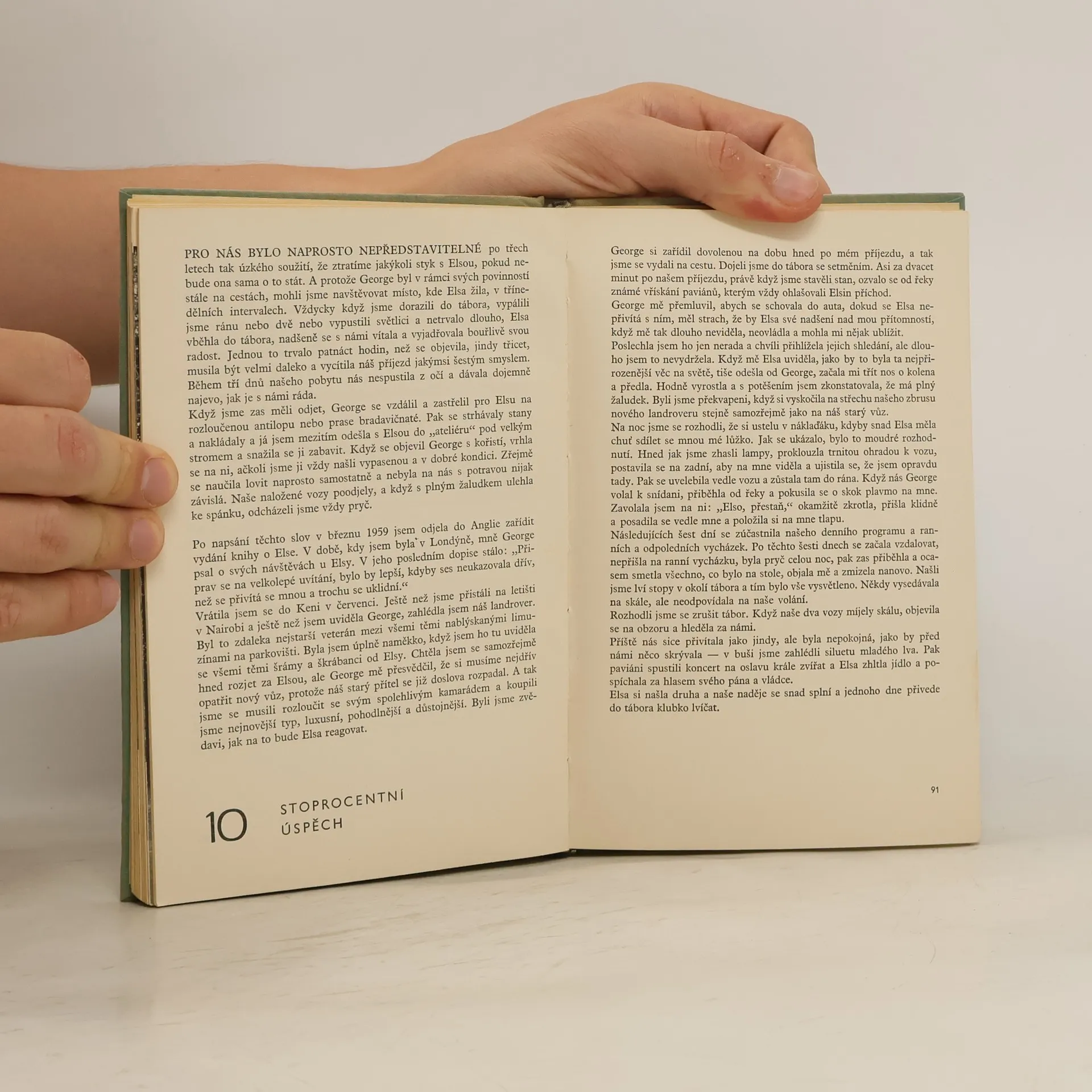 Nesmrtelné vyprávění o neobyčejném přátelství ženy a lvice, zachycuje životní osudy roztomilé, hravé Elsy – jak byla odchována lidmi a jak se postupně dokázala vrátit do náruče rodné divočiny, najít si druha a stát se matkou tří mláďat. Příběh Elsy je silným čtenářským zážitkem a zároveň unikátní studií psychologie divokých zvířat, působivým důkazem jejich inteligence, sebeovládání a emočních schopností. Vyprávění o soužití člověka se zvířaty na farmě i v buši je prosycené nádhernými, veselými i smutnějšími zážitky..