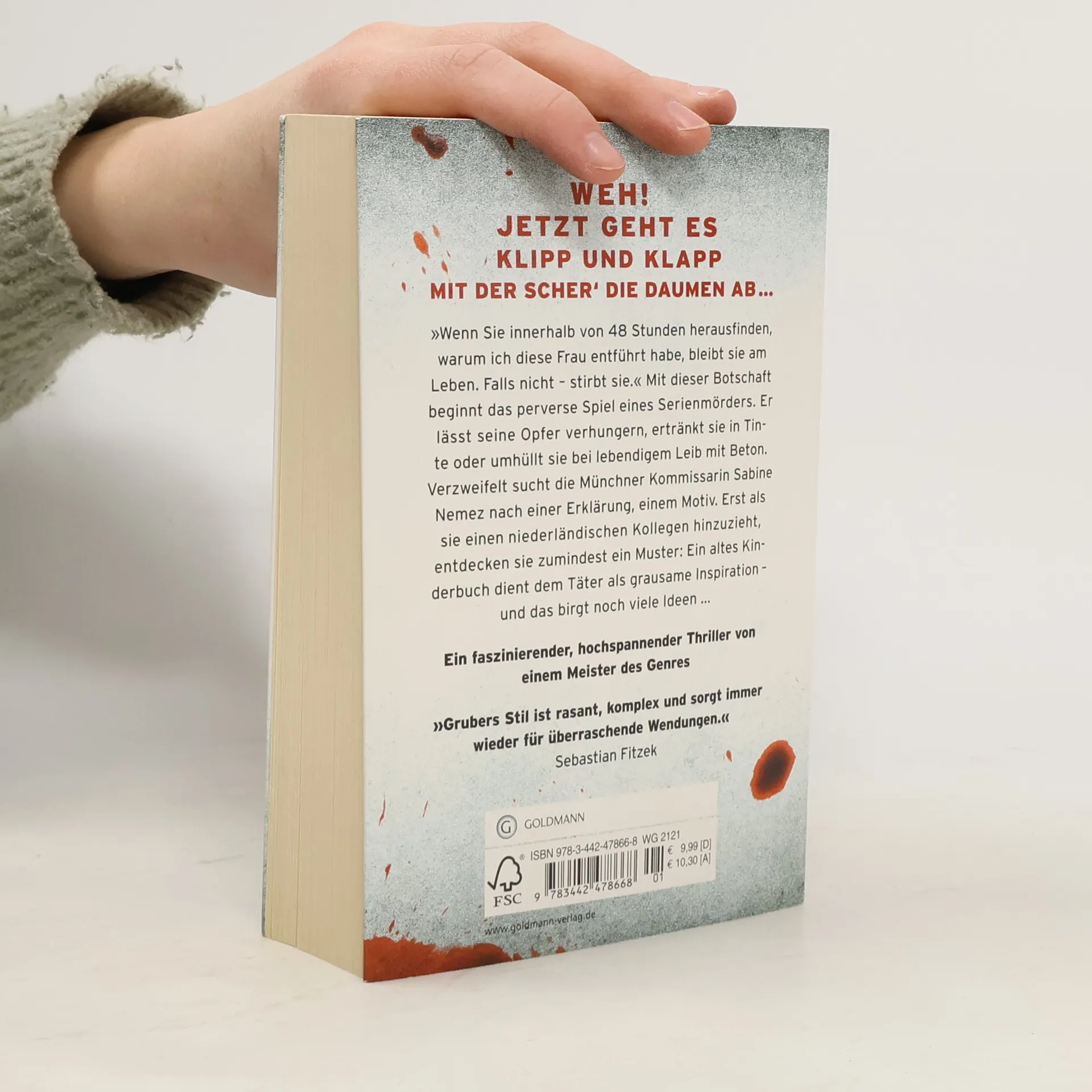 Ein Serienmörder treibt sein Unwesen – und ein altes Kinderbuch dient ihm als grausame Inspiration. »Wenn Sie innerhalb von 48 Stunden herausfinden, warum ich diese Frau entführt habe, bleibt sie am Leben. Falls nicht – stirbt sie.« Mit dieser Botschaft beginnt das perverse Spiel eines Serienmörders. Er lässt seine Opfer verhungern, ertränkt sie in Tinte oder umhüllt sie bei lebendigem Leib mit Beton. Verzweifelt sucht die Münchner Kommissarin Sabine Nemez nach einer Erklärung, einem Motiv. Erst als sie einen niederländischen Kollegen hinzuzieht, entdecken sie zumindest ein Muster: Ein altes Kinderbuch dient dem Täter als grausame Inspiration – und das birgt noch viele Ideen ... Der Auftakt zur Erfolgsserie um die Ermittler Sneijder und Nemez.