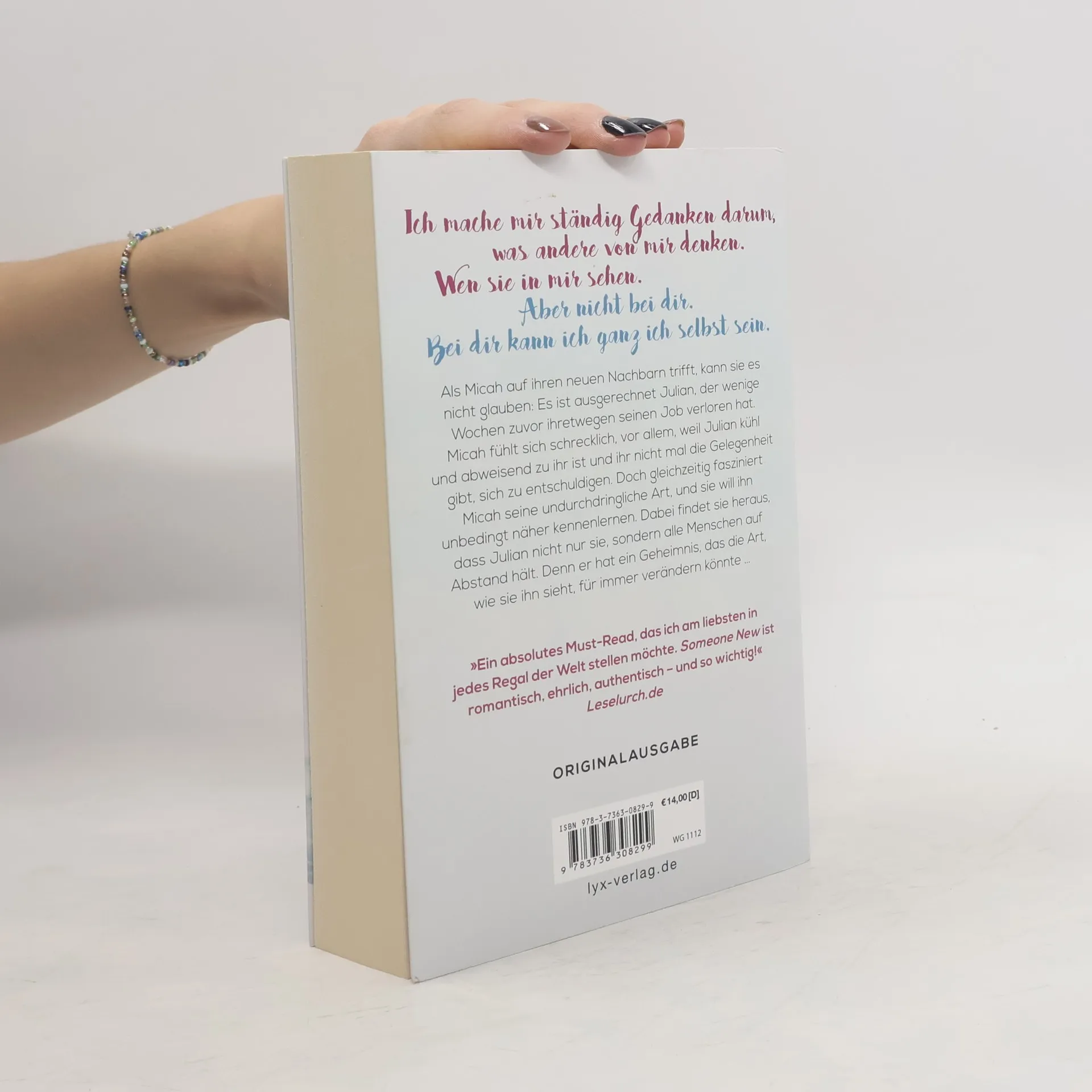 Ich mache mir ständig Gedanken darum, was andere Menschen von mir denken. Wen sie in mir sehen. Aber nicht bei dir. Bei dir kann ich ganz ich selbst sein. Als Micah auf ihren neuen Nachbarn trifft, kann sie es nicht glauben: Es ist ausgerechnet Julian, der wenige Wochen zuvor ihretwegen seinen Job verloren hat. Micah fühlt sich schrecklich, vor allem, weil Julian kühl und abweisend zu ihr ist und ihr nicht mal die Gelegenheit gibt, sich zu entschuldigen. Doch gleichzeitig fasziniert Micah seine undurchdringliche Art, und sie will ihn unbedingt näher kennenlernen. Dabei findet sie heraus, dass Julian nicht nur sie, sondern alle Menschen auf Abstand hält. Denn er hat ein Geheimnis, das die Art, wie sie ihn sieht, für immer verändern könnte ... „Ein absolutes Must-Read, das ich am liebsten in jedes Regal der Welt stellen möchte. Someone New ist romantisch, ehrlich, authentisch - und so wichtig!“ Leselurch Nach „Berühre mich. Nicht“ und „Verliere mich. Nicht.“ - der neue Roman von Platz-1-Spiegel-Bestseller-Autorin Laura Kneidl