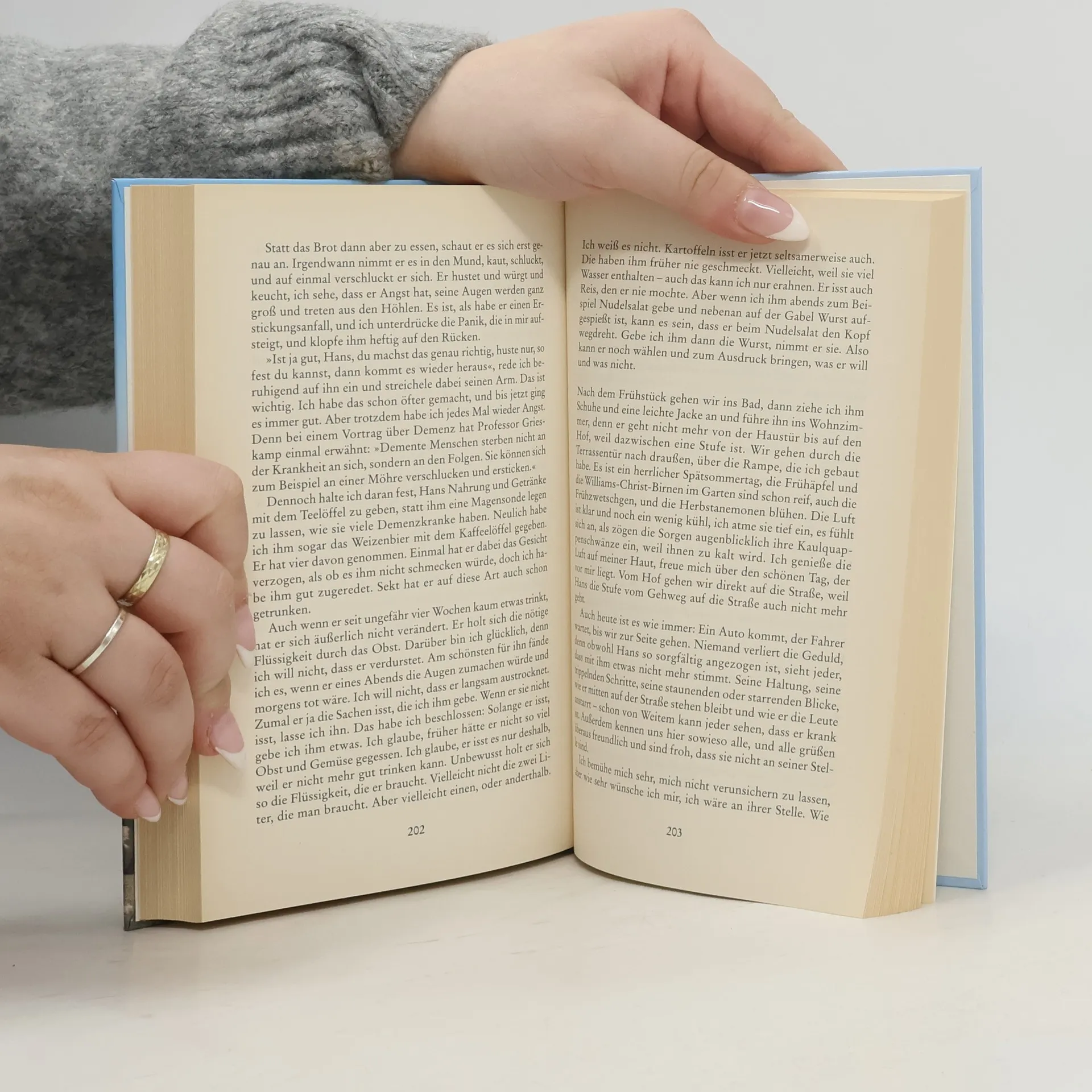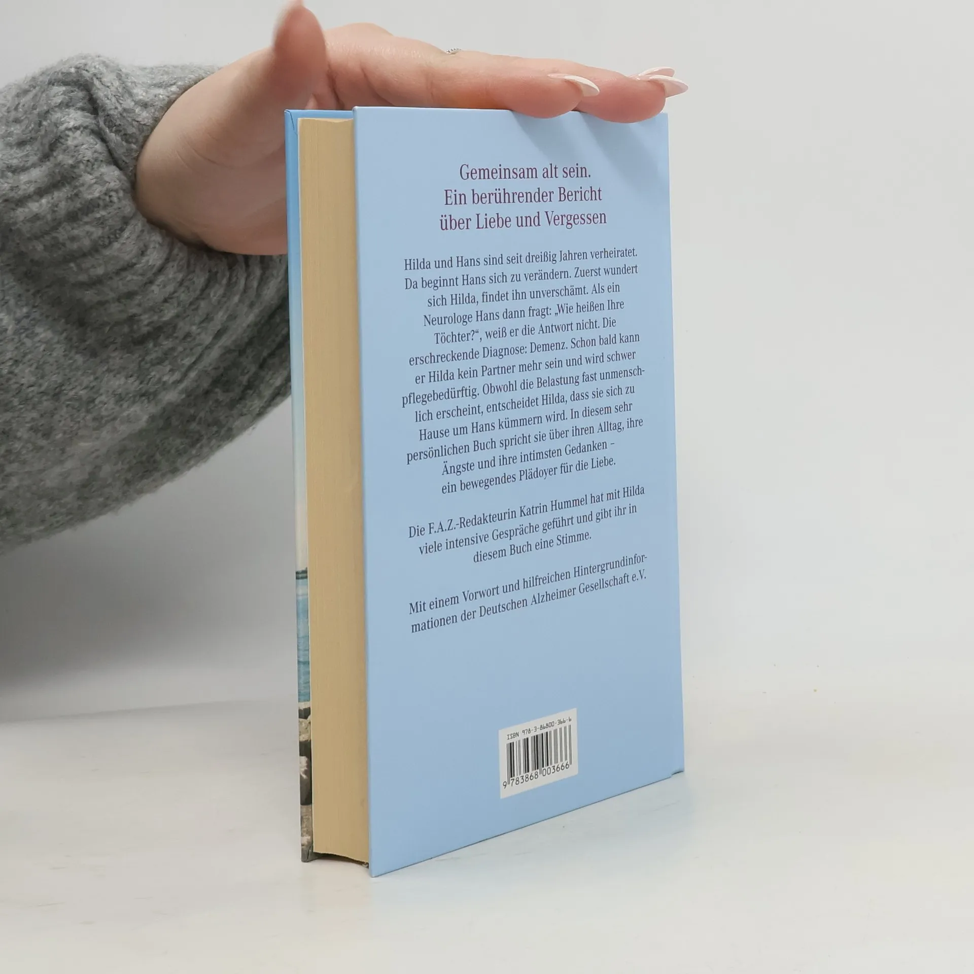 Hilda und Hans sind seit dreißig Jahren verheiratet. Doch langsam beginnt Hans sich zu verändern. Zuerst wundert sich Hilda über ihn, findet sein Verhalten manchmal unverschämt. Als ein Neurologe ihn dann fragt: „Wie heißen ihre Töchter?“, weiß Hans die Antwort nicht. Die erschreckende Diagnose: Demenz. Schon bald kann er seiner Frau Hilda kein Partner mehr sein und wird zum Schwerstpflegefall. Obwohl die Belastung fast unmenschlich erscheint, entscheidet Hilda, dass sie sich zu Hause um ihren Mann kümmern wird. In diesem sehr persönlichen Buch spricht sie über ihren Alltag, ihre Ängste und ihre intimsten Gedanken. Ihr Bericht ist ein bewegendes Plädoyer für die Liebe.