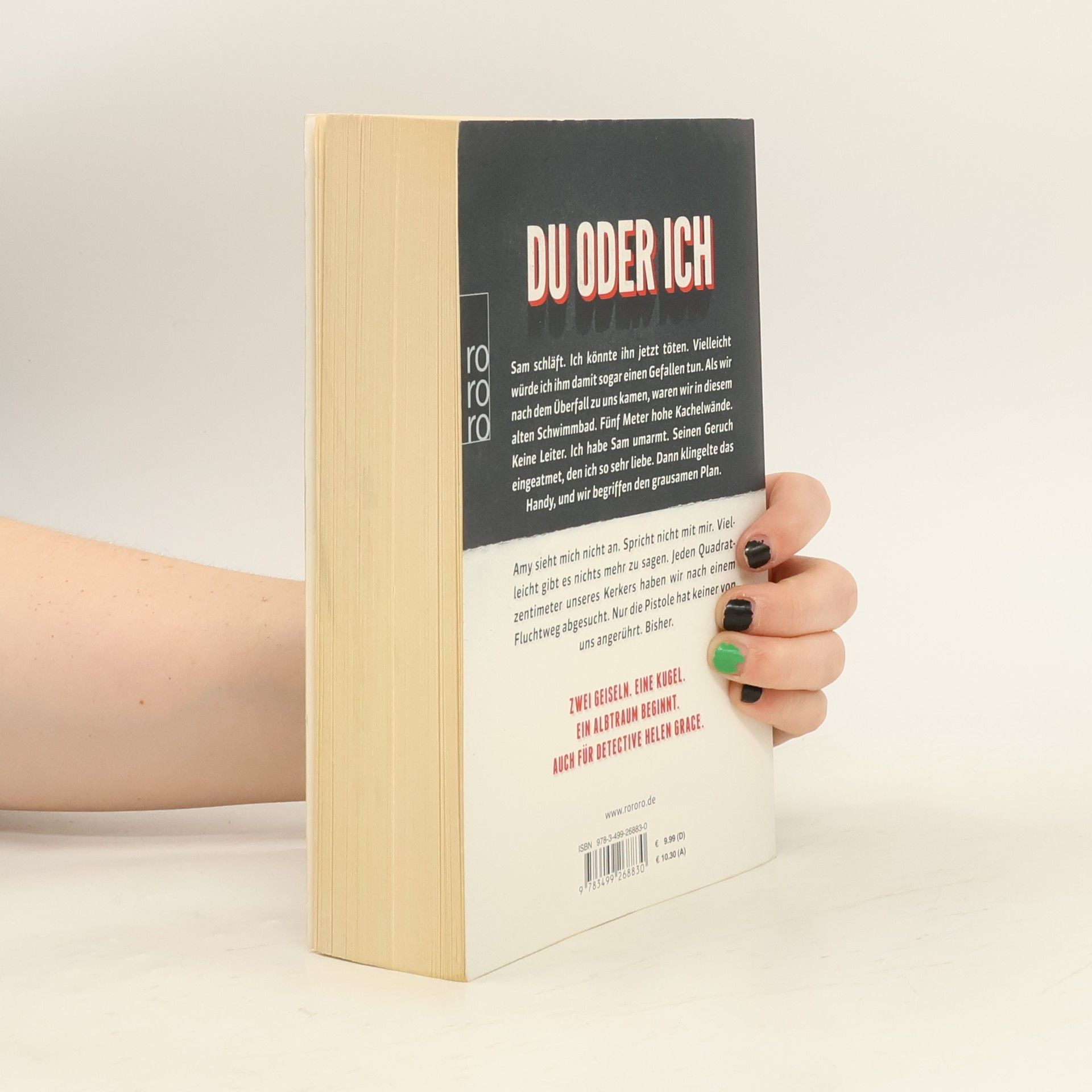 Ein perfider Killer kidnappt Paare. Die Opfer wachen orientierungslos auf, gefangen in einem Raum, niemand hört ihre Schreie. Es gibt keine Fluchtmöglichkeit, nur eine Waffe und die Botschaft des Entführers: Entweder sterben beiden einen langsamen, qualvollen Tod – oder einer bringt den anderen um und ist frei. Detective Inspector Helen Grace und ihr Team wissen nicht weiter; nichts scheint die Fälle zu verbinden. Doch die Entführungen sind so akribisch vorbereitet, so konsequent durchgeführt, dass es einen Plan geben muss. Und für Helen, die nach außen so stark und unberührbar erscheint, ist die Zeit gekommen, ein weiteres Mal ihre eigene Hölle zu durchschreiten, Brücken einzureißen und über Grenzen zu gehen. Der Auftakt zur Thrillerreihe um Detective Inspector Helen Grace! Rot oder Grün? Das Cover wählen Sie. Leben oder Tod? Die Opfer müssen wählen …Sam schläft. Ich könnte ihn jetzt töten. Vielleicht würde ich ihm damit sogar einen Gefallen tun. Als wir nach dem Überfall zu uns kamen, waren wir in diesem alten Schwimmbad. Fünf Meter hohe Kachelwände. Keine Leiter. Ich habe Sam umarmt. Seinen Geruch eingeatmet, den ich so sehr liebe. Dann klingelte das Handy, und wir begriffen den grausamen Plan. Amy sieht mich nicht an. Spricht nicht mit mir. Vielleicht gibt es nichts mehr zu sagen. Jeden Quadratzentimeter unseres Kerkers haben wir nach einem Fluchtweg abgesucht. Nur die Pistole hat keiner von uns angerührt. Bisher.