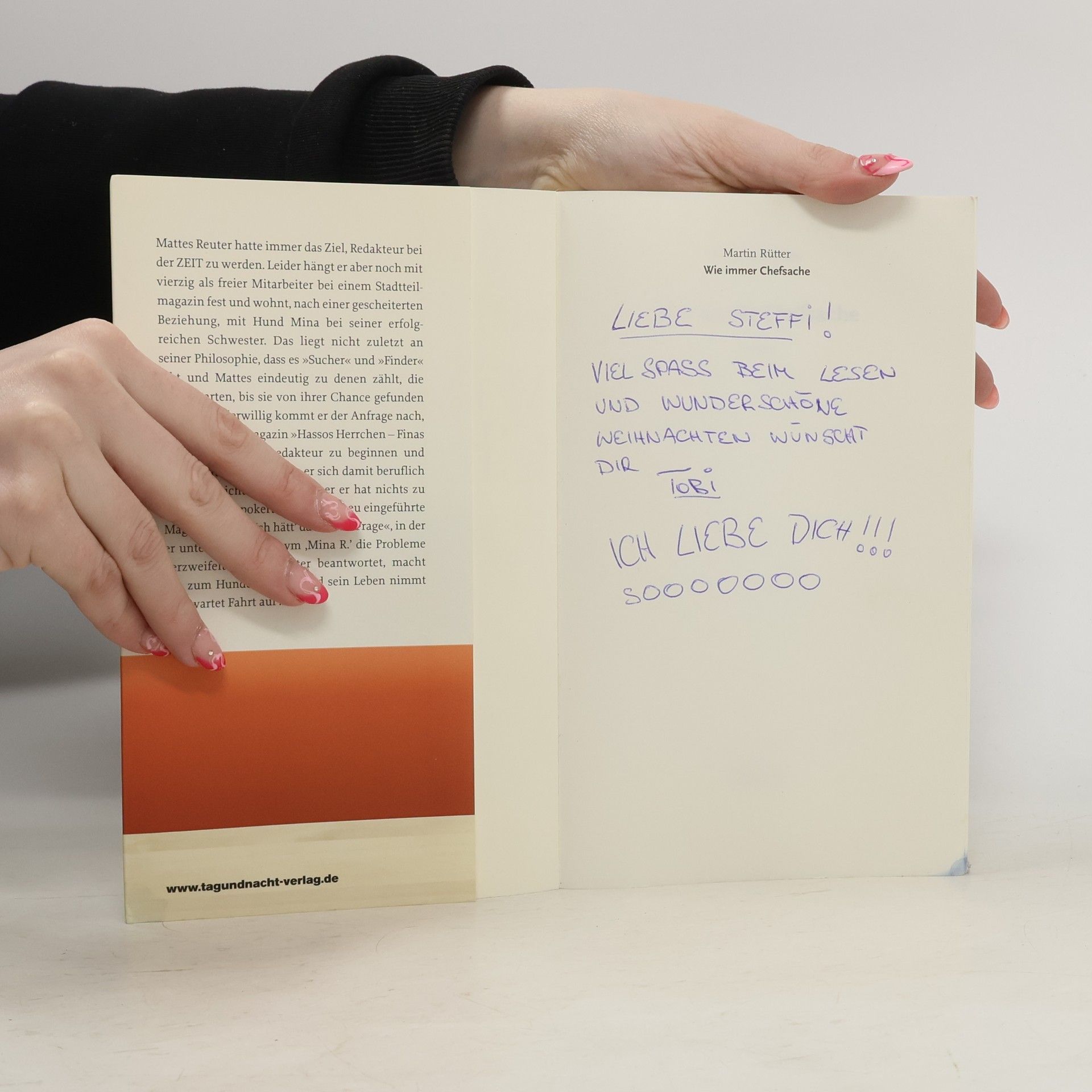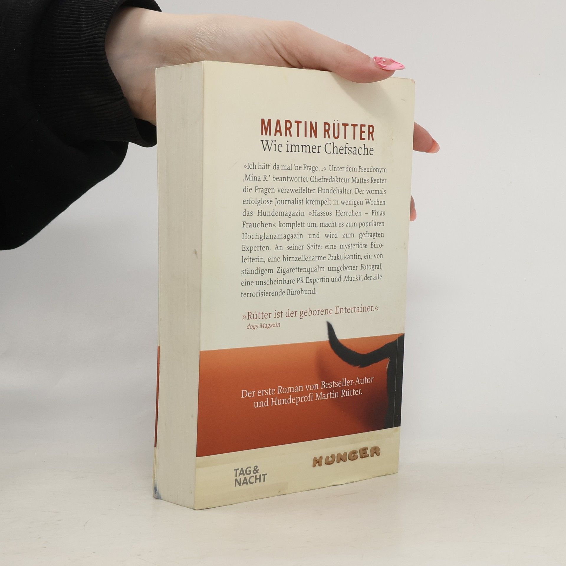 Hunde würden Rütter lesen! Menschen auch! Mattes Reuter hatte immer das Ziel, Redakteur bei der ZEIT zu werden. Leider hängt er aber noch mit vierzig als freier Mitarbeiter bei einem Stadtteilmagazin fest und wohnt, nach einer gescheiterten Beziehung, mit Hund Mina bei seiner erfolgreichen Schwester. Das liegt nicht zuletzt an seiner Philosophie, dass es „Sucher„ und „Finder“ gibt und Mattes eindeutig zu denen zählt, die lässig warten, bis sie von ihrer Chance gefunden werden. Widerwillig kommt er der Anfrage nach, bei dem Hundemagazin „Hassos Herrchen – Finas Frauchen" als Chefredakteur zu beginnen und merkt mit Entsetzen, dass er sich damit beruflich zunächst nicht verbessert. Aber er hat nichts zu verlieren und pokert hoch. Seine neu eingeführte Magazinrubrik „Ich hätt’ da mal ’ne Frage“, in der er unter dem Pseudonym ‚Mina R.’ die Probleme verzweifelter Hundehalter beantwortet, macht ihn zum Hundeexperten und sein Leben nimmt unerwartet Fahrt auf …