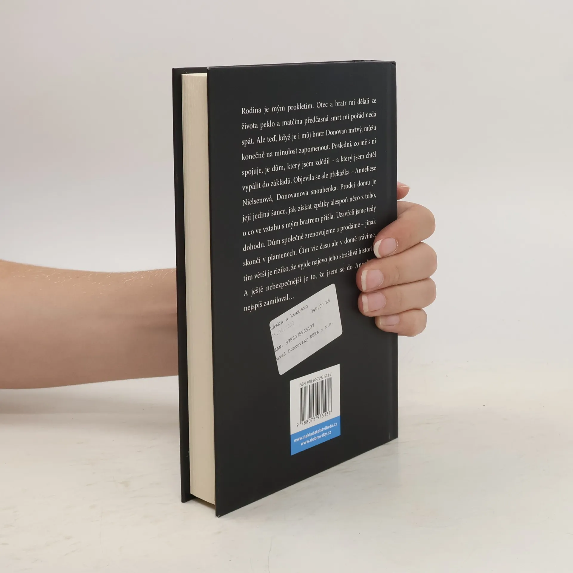 Moje rodina pro mě byla prokletím. Otec a bratr mi dělali ze života peklo. Předčasná mámina smrt mi pořád nedá spát. Teď, když můj bratr Donovan zahynul při nehodě, můžu konečně na minulost zapomenout. Posledním, co mě s ní spojuje, je dům, který jsem zdědil – a který hodlám vypálit do základů. Je tu ale jedna překážka – Anneliese Nielsenová, Donovanova snoubenka. Bratr ji zanechal bez prostředků a prodej zchátralého domu je jediná šance, jak může získat zpátky to, o co ve vztahu s ním přišla. Nemělo by mě to zajímat, ale… je něco v jejích očích, když se na mě dívá. Jsem totiž bratrovi hodně podobný, a ona ho, navzdory všemu, milovala. Uzavřeli jsme tedy dohodu. Dům společně zrenovujeme, ale ona ho pak musí prodat – jinak skončí v plamenech. Čím víc času ale v domě trávíme, tím víc hrozí, že vyjde najevo jeho strašlivá historie.A ještě nebezpečnější je to, že jsem se do Anneliese nejspíš zamiloval…