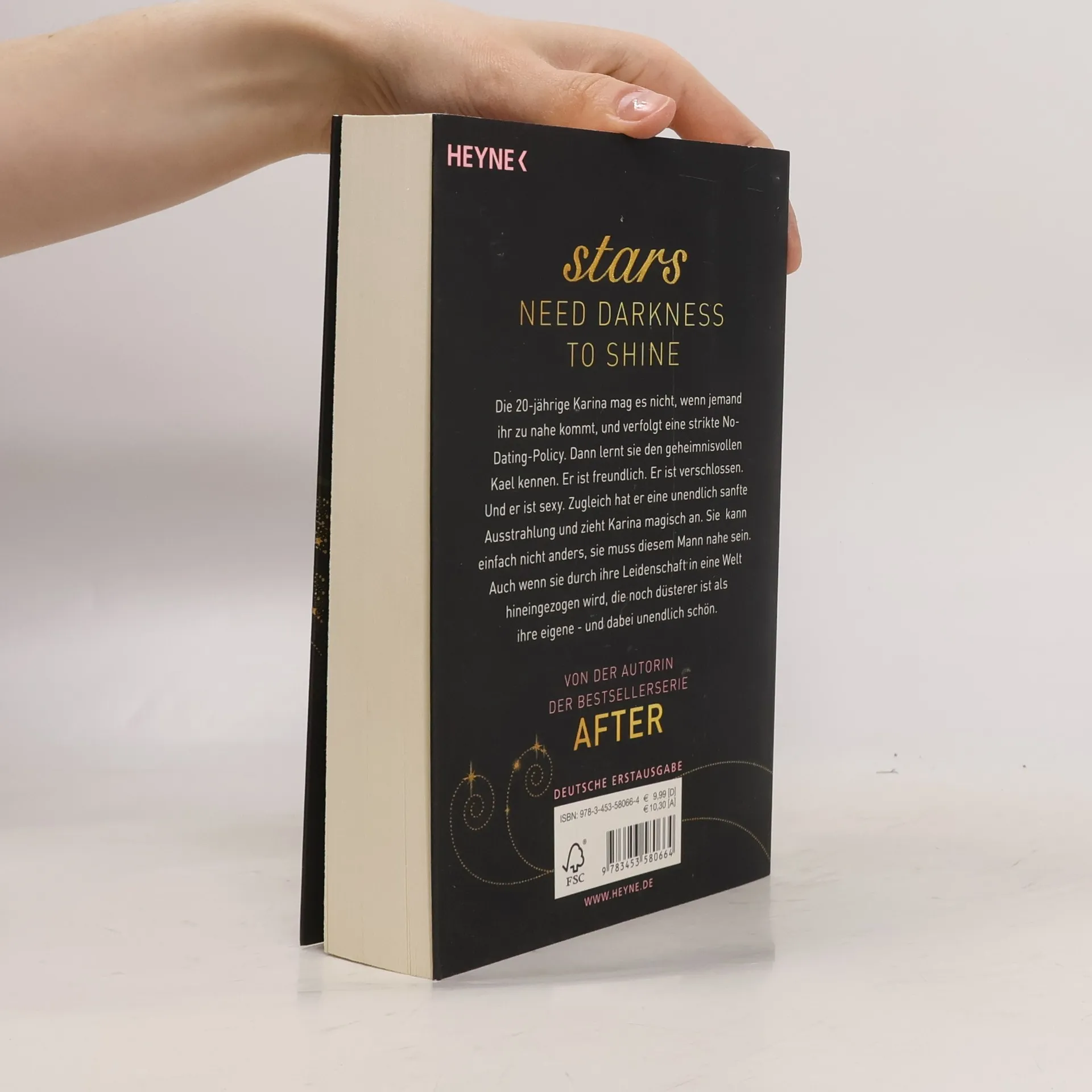 Stars need darkness to shine Die 20-jährige Karina konzentriert sich ganz auf ihren Job in einem Massagestudio und will ansonsten einfach nur ihre Ruhe haben. Schließlich endete Liebe für sie immer im Chaos. Eines Tages taucht ein neuer Kunde auf: Kael ist immer freundlich und hat eine unendlich sanfte Ausstrahlung. Er zieht Karina auf geheimnisvolle Art und Weise an, und langsam öffnet sie sich. Doch plötzlich wird Karina durch Kael in eine Welt hineingezogen, die noch düsterer ist als ihre eigene - und voller Leidenschaft.