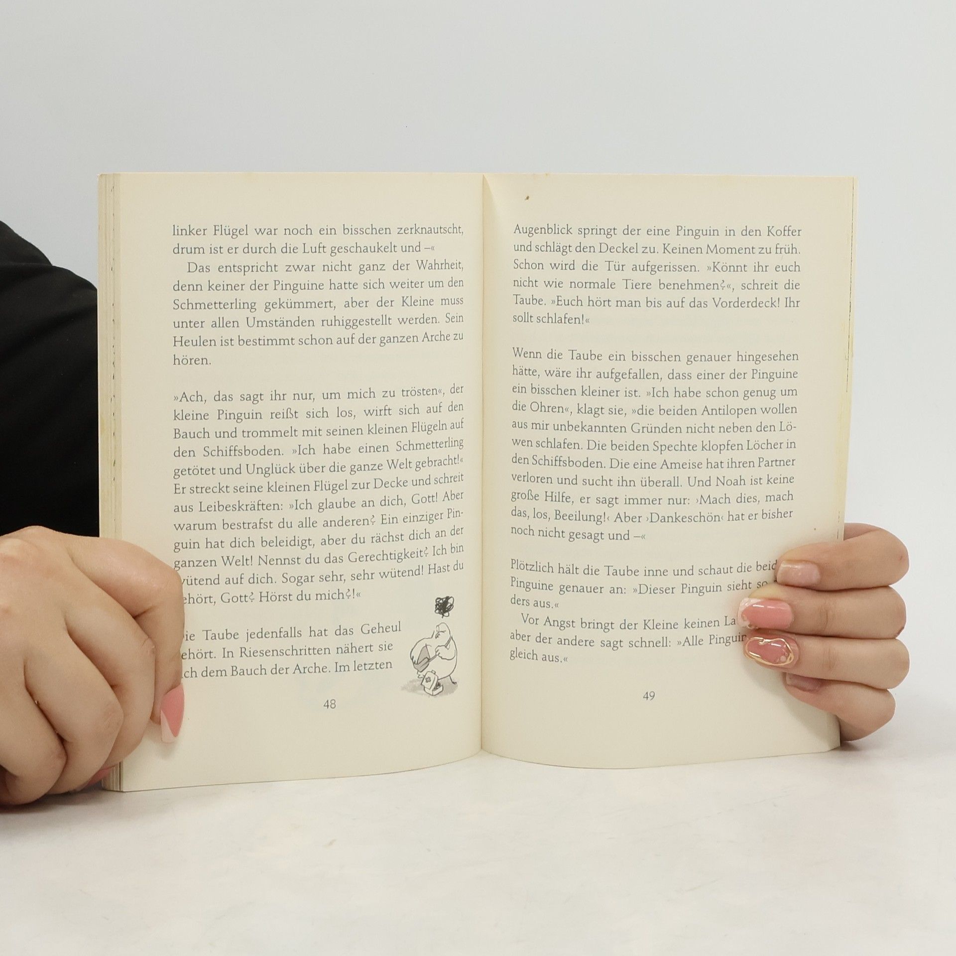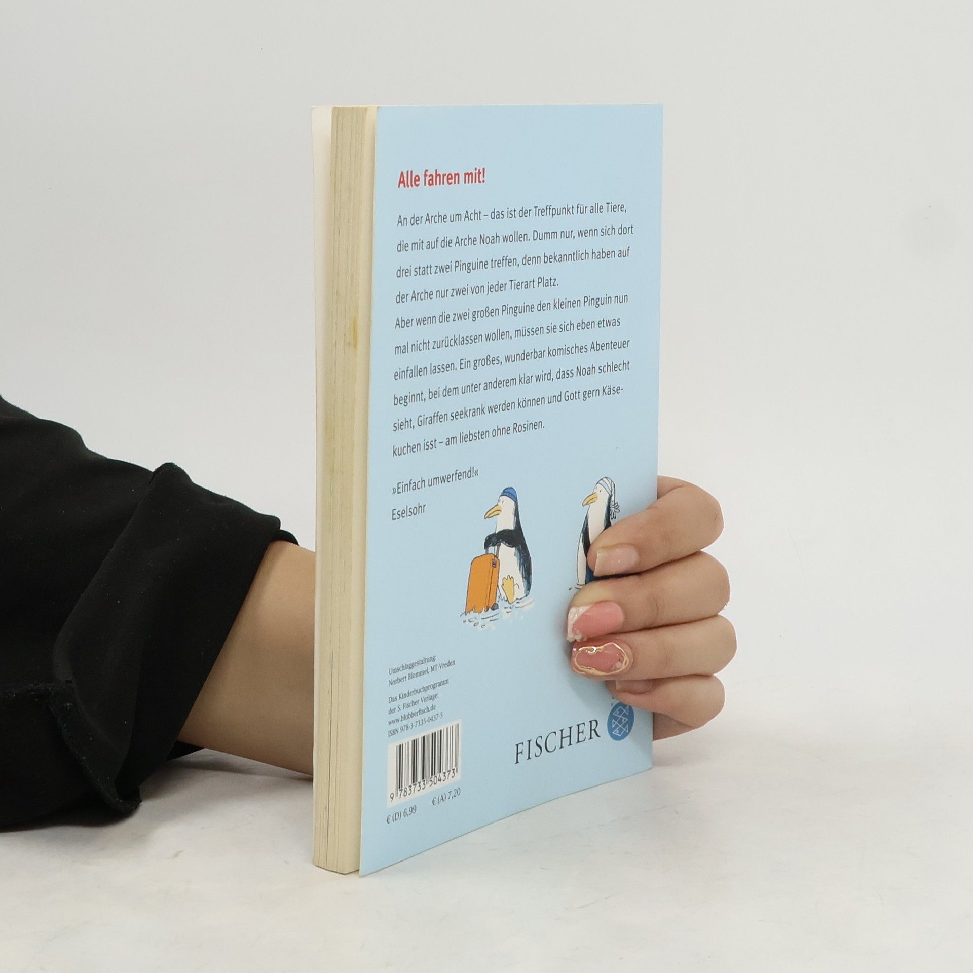Drei Pinguine erleben auf der Arche Noah als ihr ganz eigenes Abenteuer: Sie wollen alle drei mit auf Noahs Schiff, obwohl es nur für zwei von jeder Tierart Platz gibt. Auf ihrer Reise müssen die Pinguine nicht nur ihre Freundschaft unter Beweis stellen, sondern sich den ganz graoßen Fragen des Universums stellen: Ist der liebe Gott wirklich lieb? Sieht er tatsächlich alles? Auch den kleinen Pinguin, der als Dritter im Bunde versucht mitzukommen, obwohl das nicht erlaubt ist? Isst Noah gerne Käsekuchen – und wenn ja: mit oder ohne Rosinen? Mit witzigen Bildern von Jörg Mühle Unterrichtsmaterialien zum Download unter www.fischerverlage.de/service/lehrer