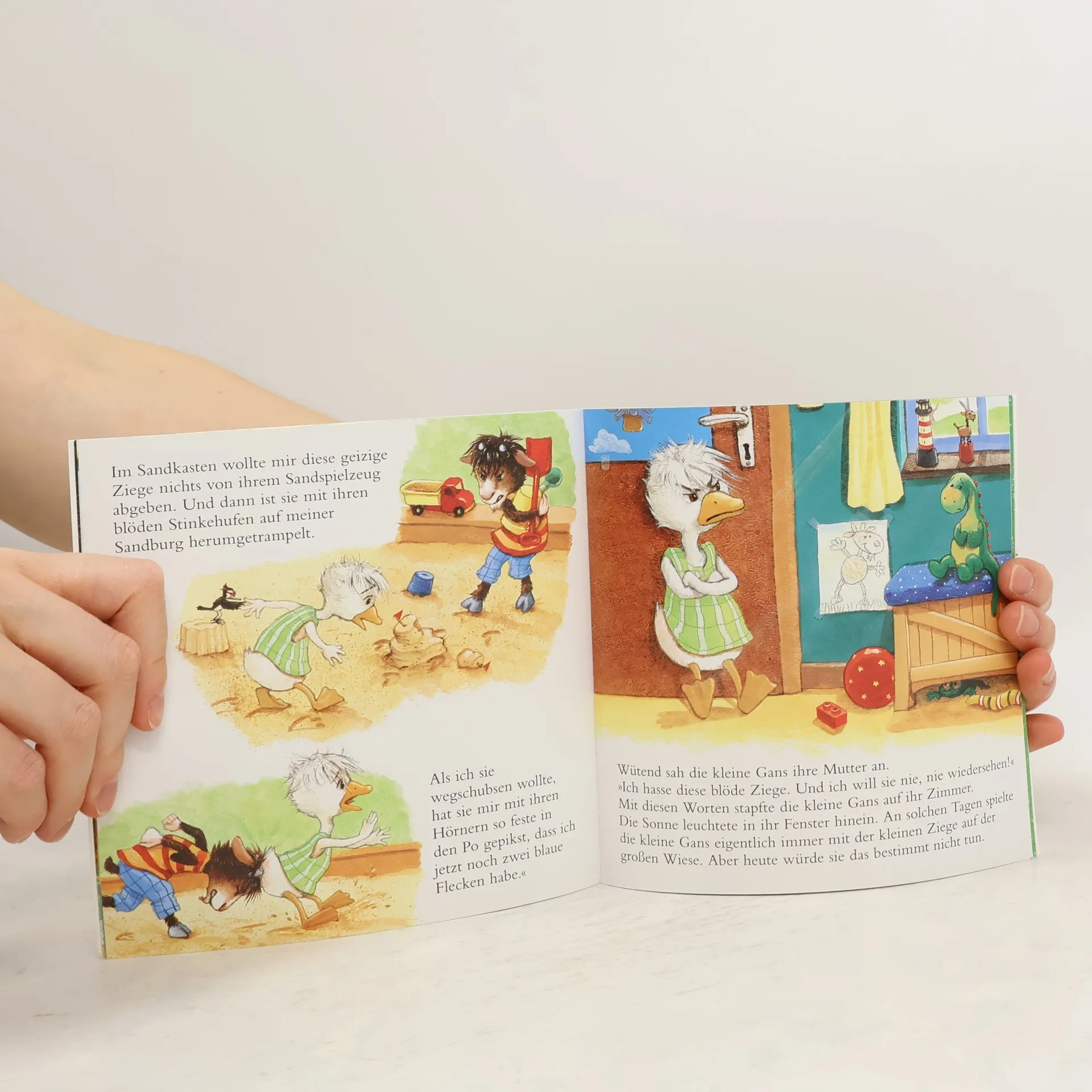 Sie zanken und versöhnen sich: Ziege und Gans sind für Kinder die besten Vorbilder, wenn es um das Lösen von Konflikten geht. Denn hier kommt jede »Partei« zu Wort. Das Konzept des Perspektivenwechsels ist seit über fünf Jahren erfolgreich: Jetzt gibt es alle Geschichten mit den beiden Streithähnen in EINEM Band. Die Geschichten beinhalten die wichtigsten Grunderfahrungen aus dem Kinderalltag: - Streit und Versöhnung - Wegnehmen und Zurückgeben - Verlieren und Gewinnen - Zugeben und Entschuldigen Mit Eltern-Tipps der Erzieherin Simone Wirtz.