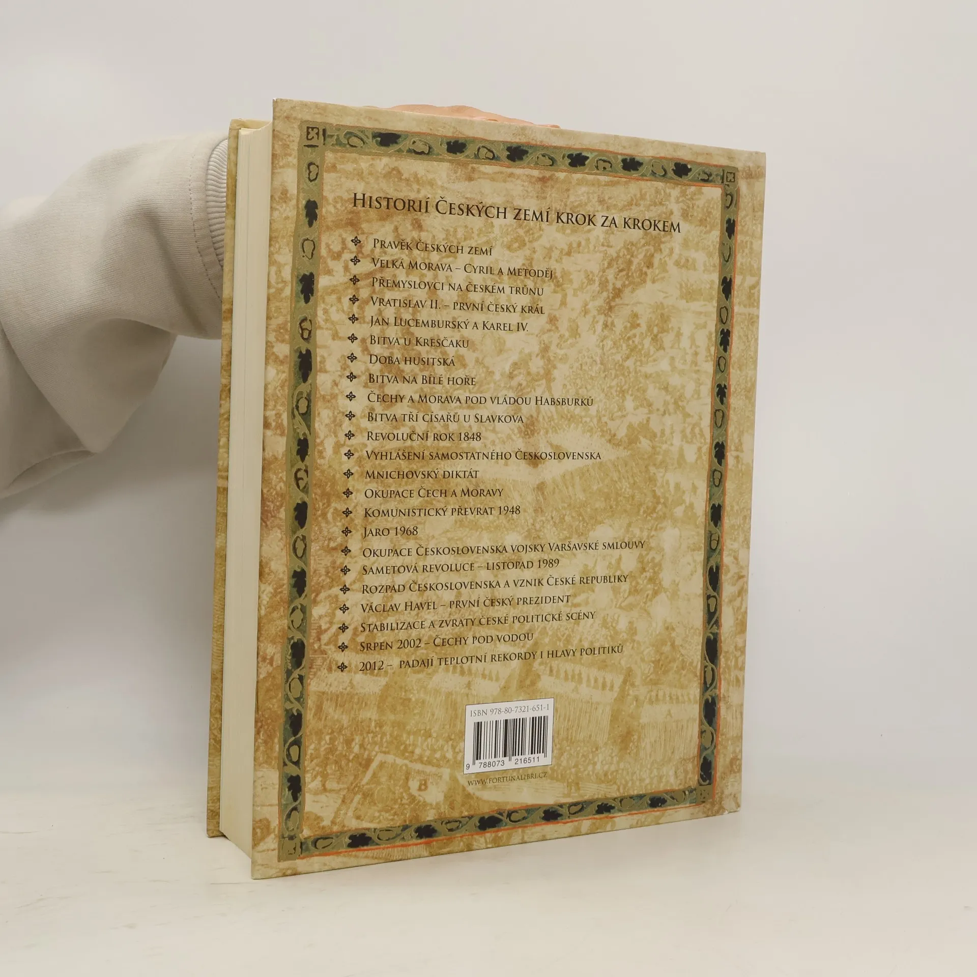 Kronika Českých zemí je dílem kolektivu českých historiků. Osvědčeným kronikářským způsobem zachycuje dějiny hlavních součástí českých historických zemí v širokých politických, společenských a kulturních souvislostech. Čtenář získá vynikající příručku dějin svého národa, který hrál a hraje ve střední Evropě nepochybně nesmírně významnou roli. Kniha vychází ve čtvrtém, aktualizovaném vydání (do roku 2012).