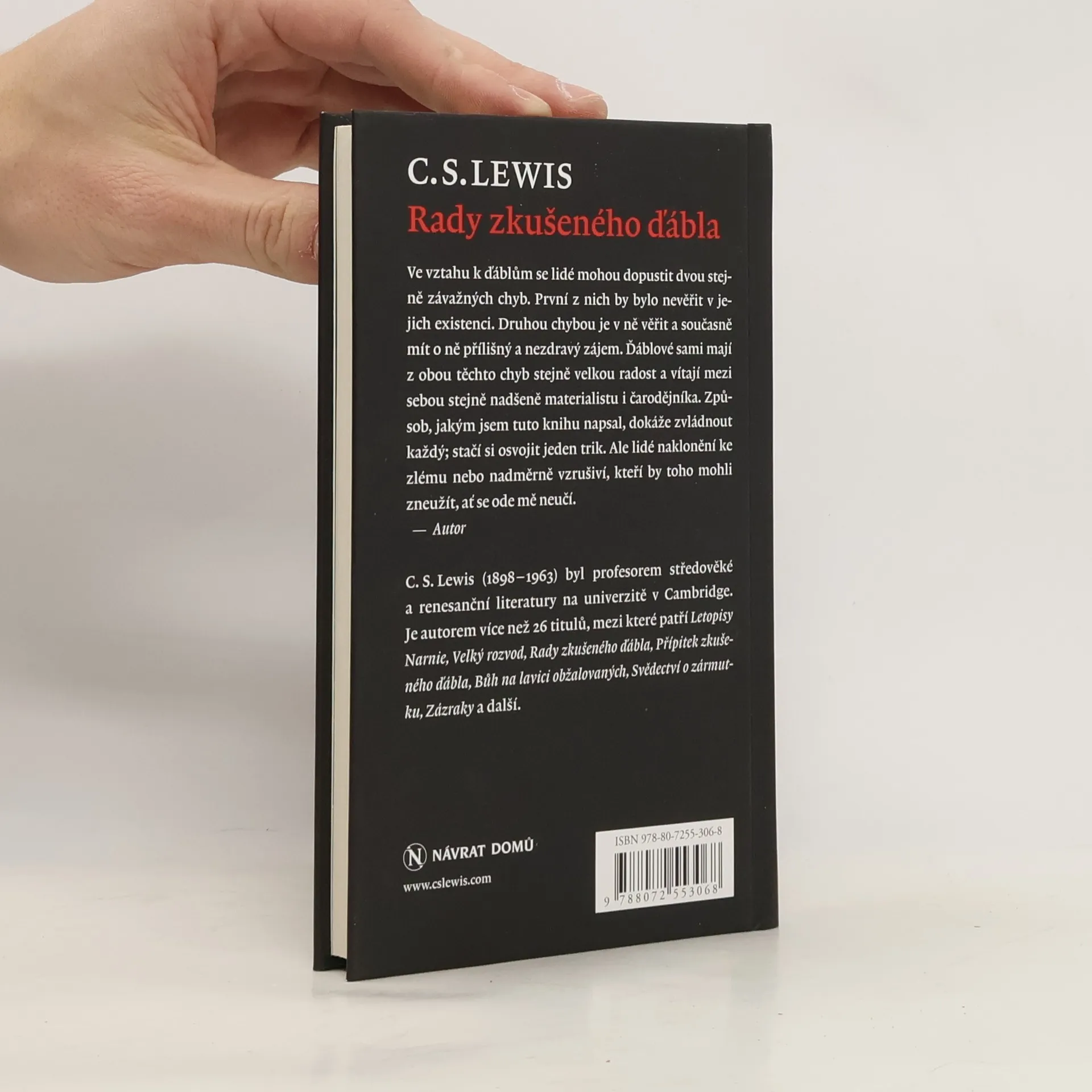 Lewisovu nejúspěšnější knihu není třeba obšírněji představovat: jde snad o nejvtipněji podané reálie „ze života pokušitelů“. Hlavní postavou příběhu je zkušený ďábelník, který formou dopisů a instrukcí radí elévovi v pokušitelském úřadu. Spojenými silami se pokouší zničit život konkrétního člověka. Lewis bravurně vystihl to, s čím se každý z nás ve svém životě denně setkává: pohrdání druhými, pokrytectví, zákonictví, pocit výjimečnosti, pocit mimořádné svatosti, propady do depresí, skepse a pochybnosti. Rady zkušeného ďábla jsou nejenom vtipným čtením, nýbrž nám umožní nahlédnout více do zákulisí duchovního světa...