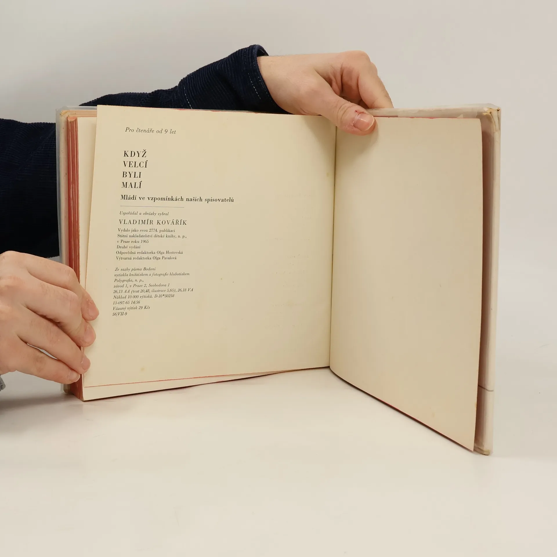 Mládí ve vzpomínkách našich spisovatelů. -- Knížku, kterou otvíráte, napsalo třicet spisovatelů. Nejstarší z nich se narodil r. 1773. Nejmladší byl dítětem a chlapcem uprostřed první světové války.... Uspořádal a obrázky vybral autor. J. Jungman, J. E. Purkyně, Jan Kollár, F. Palacký,B. Němcová, J. V. Frič, K. Světlá, J. Neruda......až po V. Nezvala, J. Seiferta a F. Hrubína. Kniha vyšla jako 2774. publikace SNDK n.p. Náklad 10000 výtisků