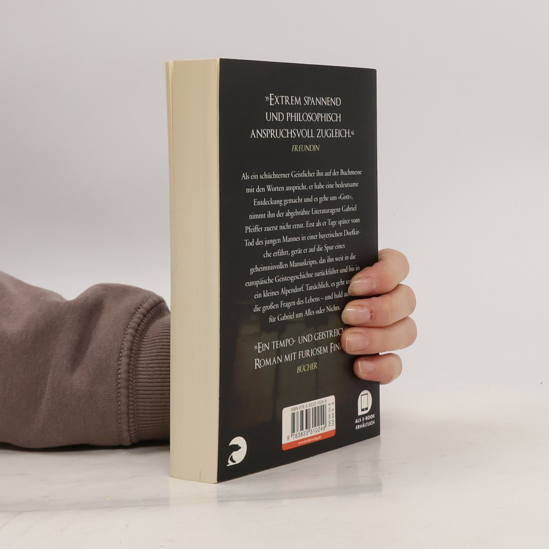 Zuerst nimmt Gabriel Pfeiffer den schüchternen Geistlichen nicht ernst, der ihn auf der Buchmesse anspricht: »Es geht um Gott!« – und eine möglicherweise bedeutende Entdeckung. Was soll der abgebrühte Literaturagent damit anfangen? Erst als er später vom Tod eben jenes Seminaristen in einer bayerischen Dorfkirche liest, zieht ihn die Geschichte in den Bann. In ihrem Zentrum: ein geheimnisvolles Manuskript, das schon in früheren Tagen Europas Geisteswelt elektrisierte. Gabriel recherchiert in der British Library und reist in das bayerische Dorf und findet mehr als eine gute Story: Es geht, wie prophezeit, tatsächlich um Gott, um Glauben, Gewissheit und Liebe - und am Ende um Leben und Tod.