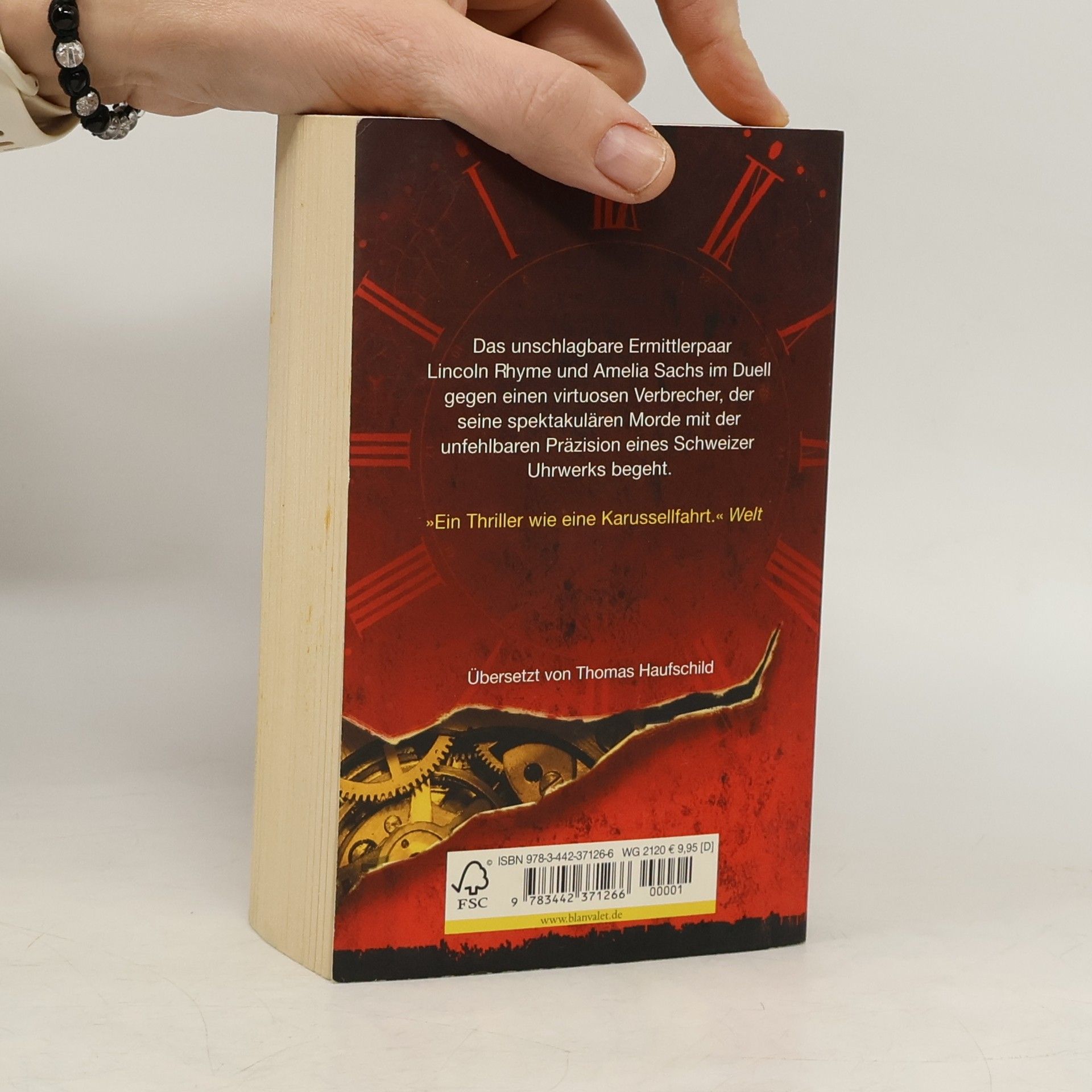 Beim kalten Vollmond: fünf vor Mord. Der 7. Fall für Lincoln Rhyme und Amelia Sachs. Kleine Standuhren, die gnadenlos die letzten Sekunden im Leben der Opfer herunterzählen – sie sind das unverwechselbare Markenzeichen des „Uhrmachers“. Lincoln Rhyme und Amelia Sachs jagen einen Serienkiller, der seine Morde mit der unfehlbaren Präzision eines Schweizer Uhrwerks begeht. Und sie erhalten dabei unschätzbare Hilfe von Kathryn Dance – einer weltweit anerkannten Verhörspezialistin, die Verbrecher zuverlässiger entlarven kann als ein Lügendetektor. Doch der Uhrmacher ist den Ermittlern stets einen Schritt voraus und irgendwo im Verborgenen tickt ein Zeitzünder unerbittlich gegen Null ...Deavers neuer Megathriller wird Ihnen buchstäblich die Zeit vertreiben ...
