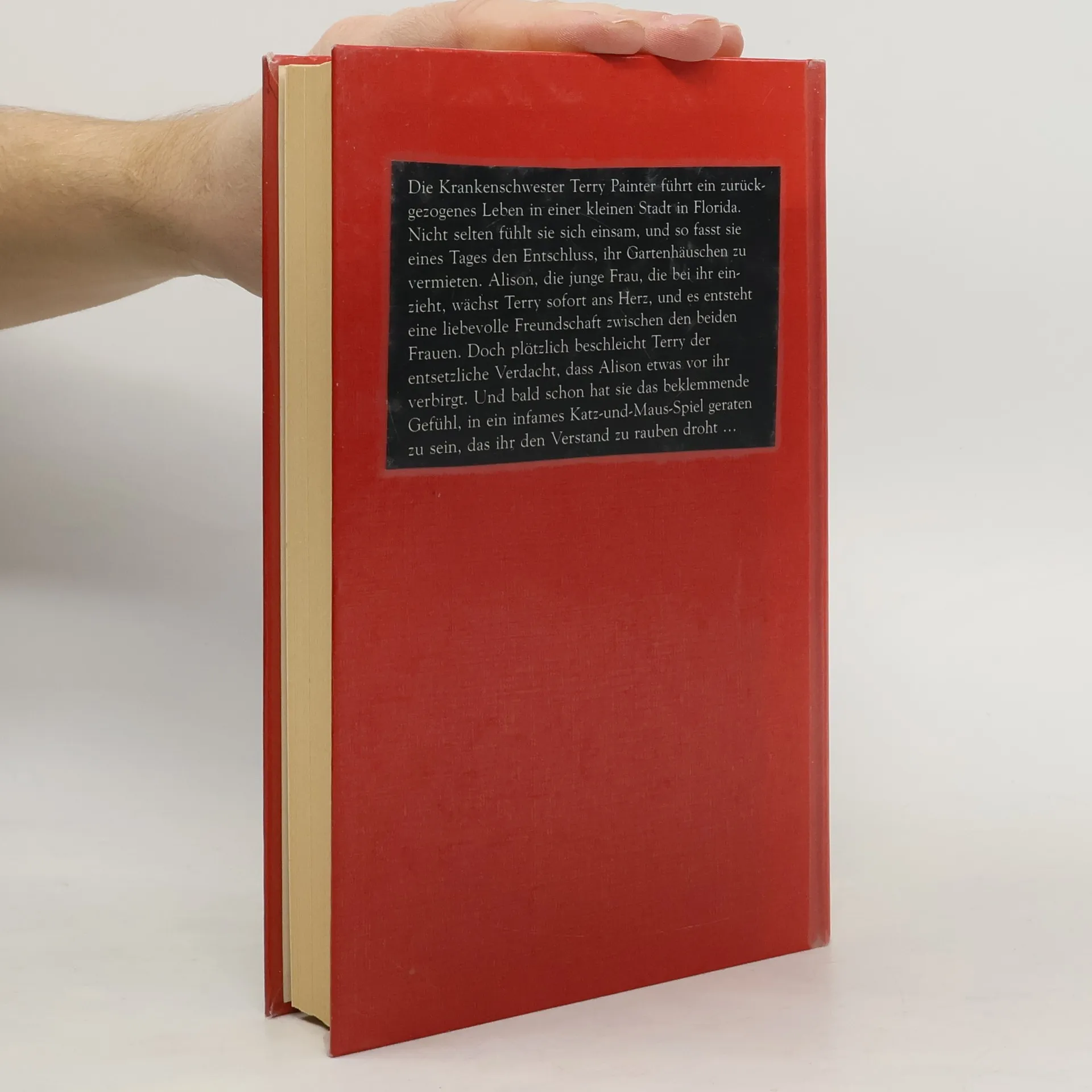 Der Tod hat zarte Hände … Die Krankenschwester Terry Painter führt ein zurückgezogenes Leben in einer kleinen Stadt in Florida. Nicht selten fühlt sie sich einsam, und so fasst sie eines Tages den Entschluss, ihr Gartenhäuschen zu vermieten. Alison, die junge Frau, die bei ihr einzieht, wächst Terry sofort ans Herz, und es entsteht eine liebevolle Freundschaft zwischen den beiden Frauen. Doch plötzlich beschleicht Terry der entsetzliche Verdacht, dass Alison etwas vor ihr verbirgt – und sie hat immer öfter das beklemmende Gefühl, in ein infames Katz-und-Maus-Spiel geraten zu sein, das ihr den Verstand zu rauben droht …