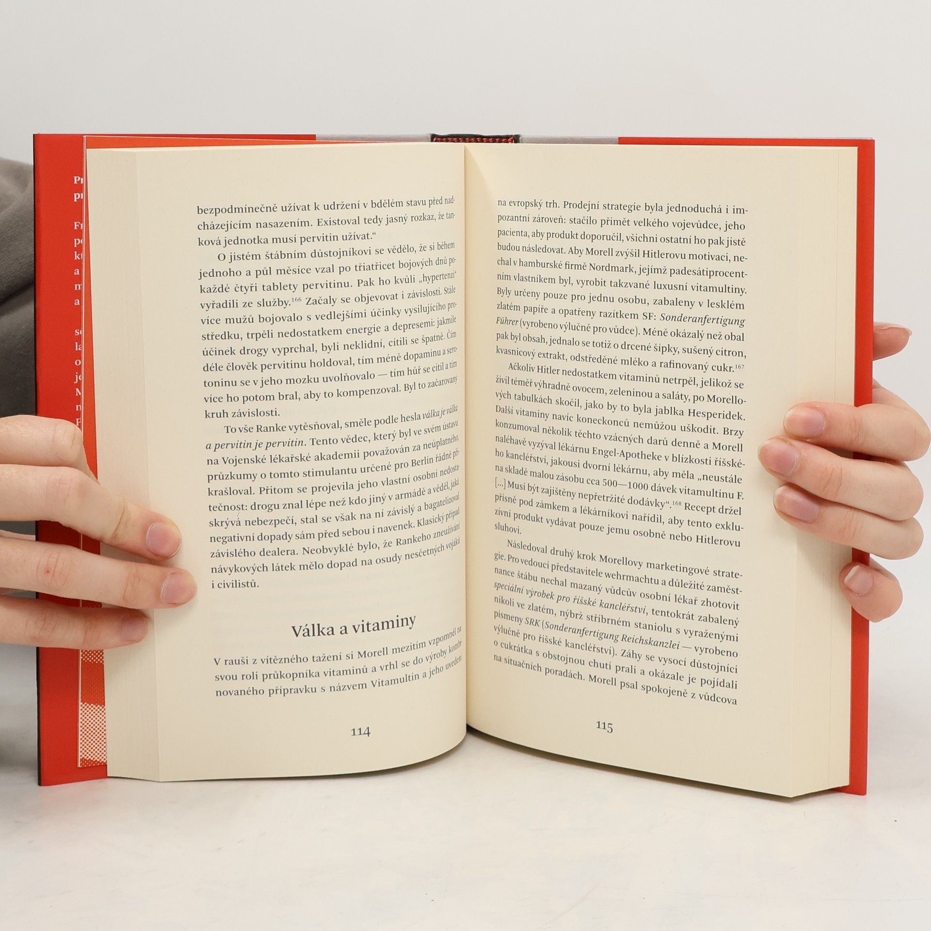 Strhující jako thriller – první komplexní studie drogové problematiky ve třetí říši. Když Němci v roce 1940 vtrhli do Francie, měli vojáci wehrmachtu k dispozici třicet pět milionů dávek pervitinu. Látka – dnes mezinárodně známá jako meth – byla tehdy k dostání v každé lékárně. Droga měla umožnit tzv. bleskovou válku a stala se běžnou součástí výbavy vojáků. Dokonce i údajný abstinent Hitler se rád uchyloval k farmaceutickým stimulantům. V době, kdy nařídil poslední ofenzivu v zimě roku 1944, nebyl čistý ani jeden den. Jeho osobní lékař Theo Morell jej zásoboval všemi druhy léků, hormonů i tvrdých drog. Pouze v tomto stavu mohl vůdce vydržet tak dlouho. Ohler prošel všechny materiály k tématu, hovořil s pamětníky, vojenskými historiky i lékaři. Na knize se podílel přední historik Hans Mommsen, který také napsal doslov.