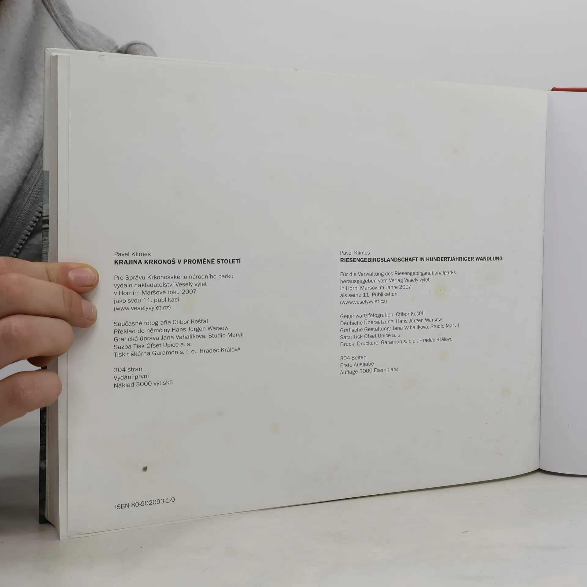 Výpravná obrazová publikace vyšla 1. září 2007, obsahuje 274 fotografií, z toho 132 dobových snímků a k nim ze stejného místa pořízených srovnávacích současných fotografií fotografa Ctibora Košťála. Doprovodný text v českém a zároveň v německém jazyce představuje v deseti kapitolách základní prvky krkonošské krajiny. Hlavní pozornost autor věnuje proměně kulturní krajiny, text je často kritický a velmi konkrétní.