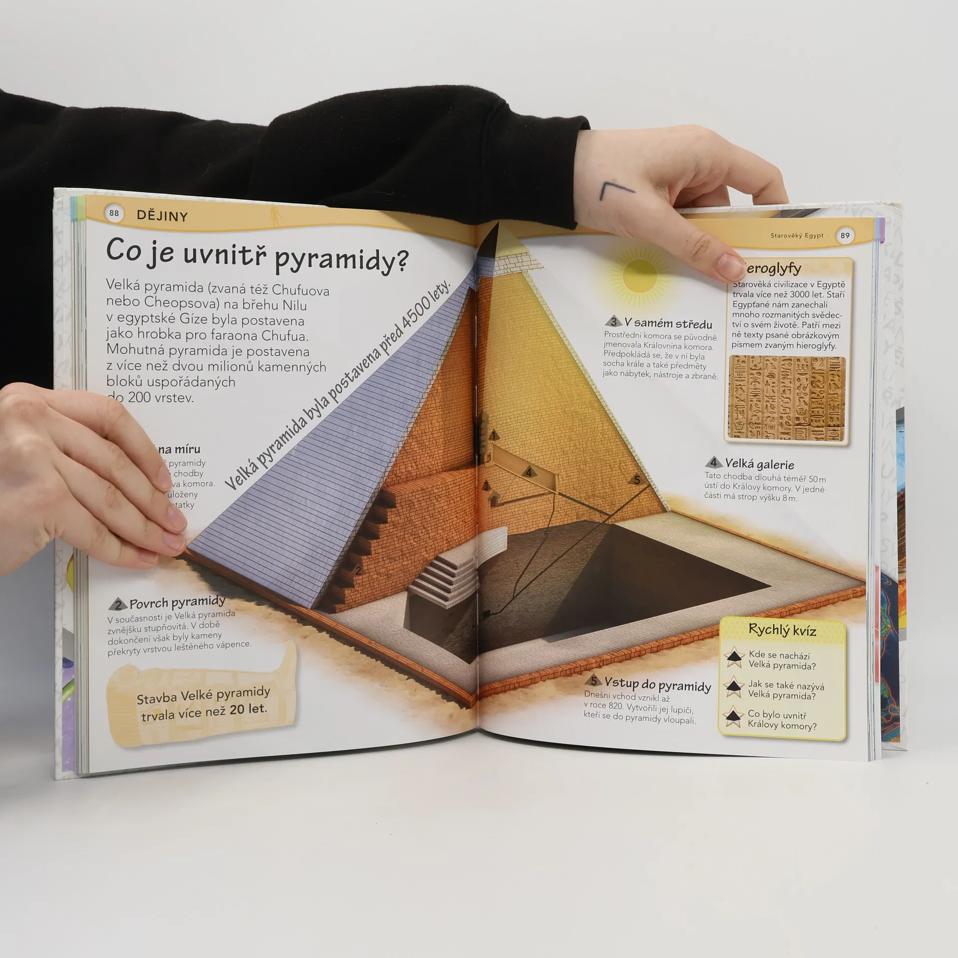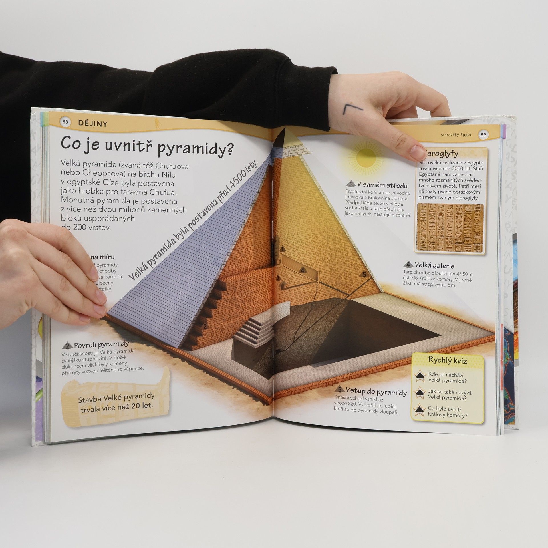 Perfektní odpovědi na záludné otázky, to je podnázev encyklopedie pro děti mladšího školního věku, která je tím pádem trochu jiná… Forma otázek a odpovědí je ideální pro zvědavce, kteří chtějí porozumět světu a dovedou klást otázky, jaké by dospělý položit neuměl – bezprostřední a prosté: Co dělá Slunce v noci? Kolik je na nebi hvězd? Jedli dinosauři lidi? Proč ptáci létají? Kde bydlí zvířata? Jaké to je být vynálezcem? Proč musím kýchat? – Na podobné otázky, uspořádané do tematických okruhů, dostávají děti jasné, srozumitelné a uspokojivé odpovědi plné fascinujících informací a doprovázených úžasnými obrázky, schématy a 3D průřezy.
