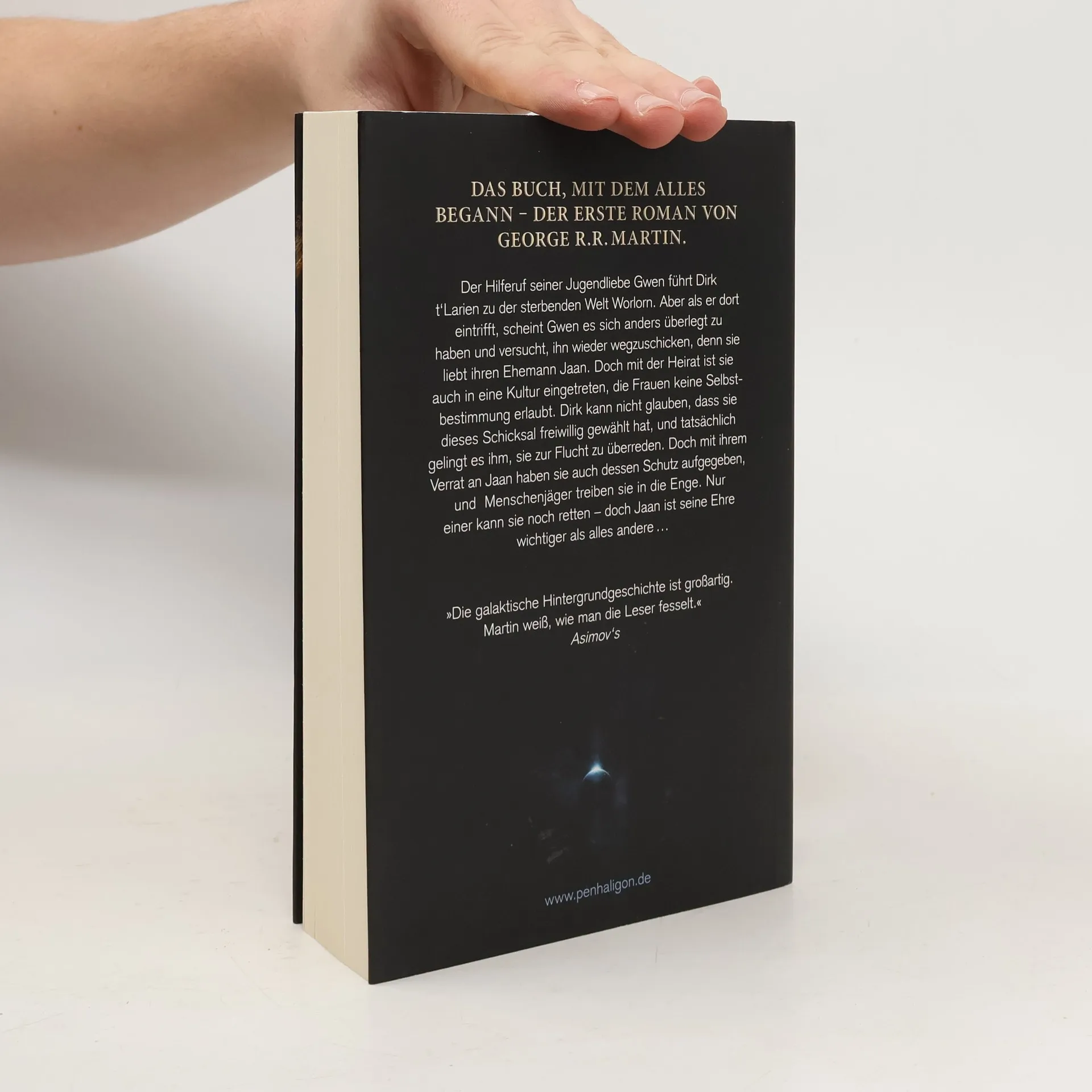 Das Buch, mit dem alles begann – der erste Roman von GRRM Der Hilferuf seiner Jugendliebe Gwen führt Dirk t'Larien zu der sterbenden Welt Worlorn. Aber als er dort eintritt, scheint Gwen es sich anders überlegt zu haben und versucht, ihn wieder wegzuschicken, denn sie liebt ihren Ehemann Jaan. Doch mit der Heirat ist sie auch in eine Kultur eingetreten, die Frauen keine Selbstbestimmung erlaubt. Dirk kann nicht glauben, dass sie dieses Schicksal freiwillig gewählt hat, und tatsächlich gelingt es ihm, sie zur Flucht zu überreden. Doch mit ihrem Verrat an Jaan haben sie auch dessen Schutz aufgegeben, und Menschenjäger treiben sie in die Enge. Nur einer kann sie noch retten – doch Jaan ist seine Ehre wichtiger als alles andere …
