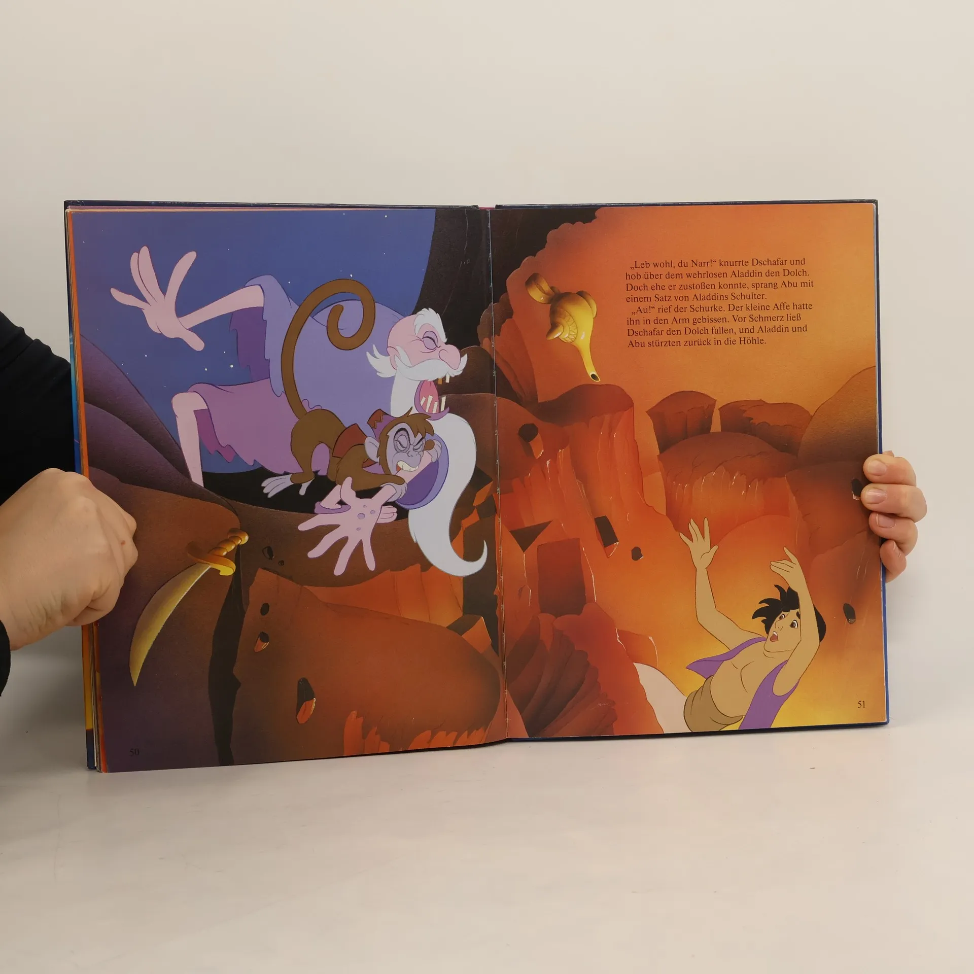 Liebevoll illustriertes Märchen um den Bettlerjungen Aladdin der mit Hilfe des Geistes aus der Wunderlampe das Herz von Prinzessin Jasmin erobert.