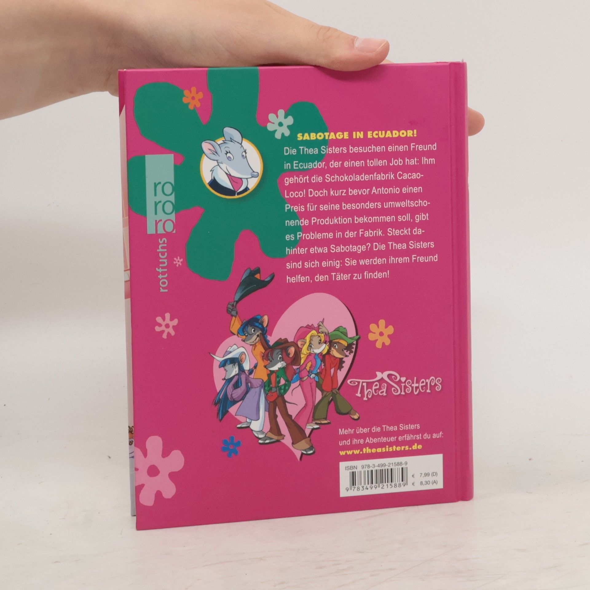 Sabotage in Ecuador! Die Thea Sisters besuchen einen Freund in Ecuador, der einen tollen Job hat: Ihm gehört die Schokoladenfabrik Cacao-Loco! Doch kurz bevor Antonio einen Preis für seine besonders umweltschonende Produktion bekommen soll, gibt es Probleme in der Fabrik. Steckt dahinter etwa Sabotage? Die Thea Sisters sind sich einig: Sie werden ihrem Freund helfen, den Täter zu finden! Mehr über die Thea Sisters und ihre Abenteuer erfährst du auf: www. theasisters. de