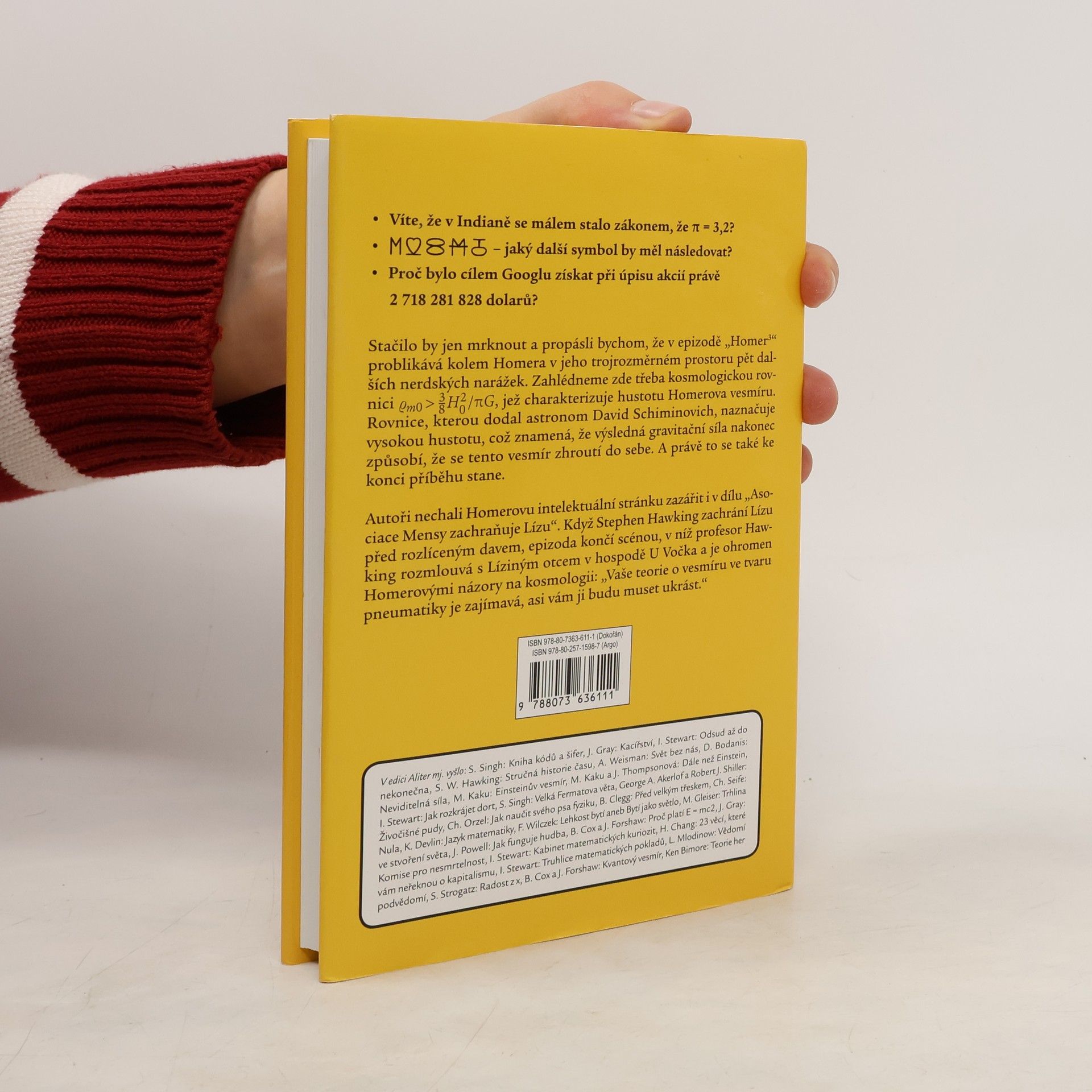 Možná jste už viděli stovky dílů seriálu Simpsonovi či jejich sesterské Futuramy, určitě však nemáte ani tušení, že obsahují dost matematiky na to, aby naplnila plnohodnotný univerzitní kurz. Kde se tam ta matematika vzala? Mnozí z autorů obou seriálů mají totiž vedle vyvinutého smyslu pro humor i vyšší matematické vzdělání, a kromě toho neovladatelnou chuť obě svoje záliby spojovat. Simon Singh vlastním studiem i konzultacemi s těmito autory seriálu Simpsonovi odhalil nesčetné a často dobře skryté narážky na stovky krásných a zábavných matematických problémů, které pak ve své knize s důvtipem a pravým zápalem vysvětluje a ukazuje v kontextu matematické vědy. Setkáte se zde s poznatky o šifrách, Mersennových prvočíslech, Eulerově rovnici a různě velkých nekonečnech, samozřejmě také se vším možným o číslech - od čísel dokonalých až po čísla narcistická. Mnohé se dozvíte i o hlubokých a dosud nevyřešených problémech, jako například o P versus NP. Opravdovým znalcem Simpsonových a Futuramy se stanete teprve po přečtení této knížky, protože matematika je do jejich vtipu neodlučitelně zapletena!
