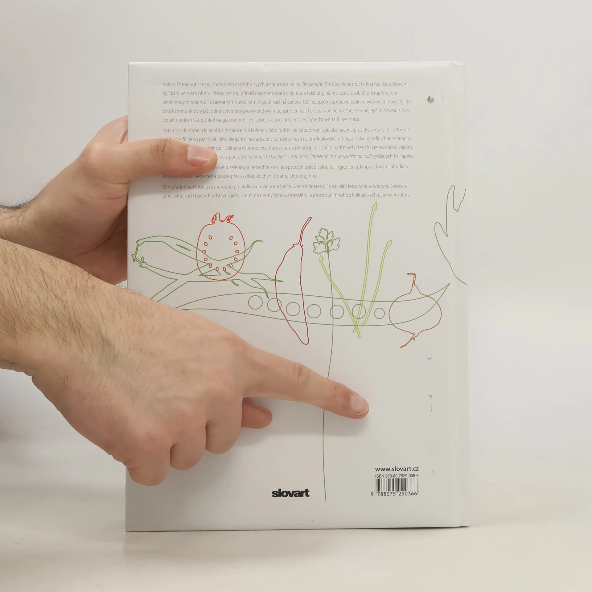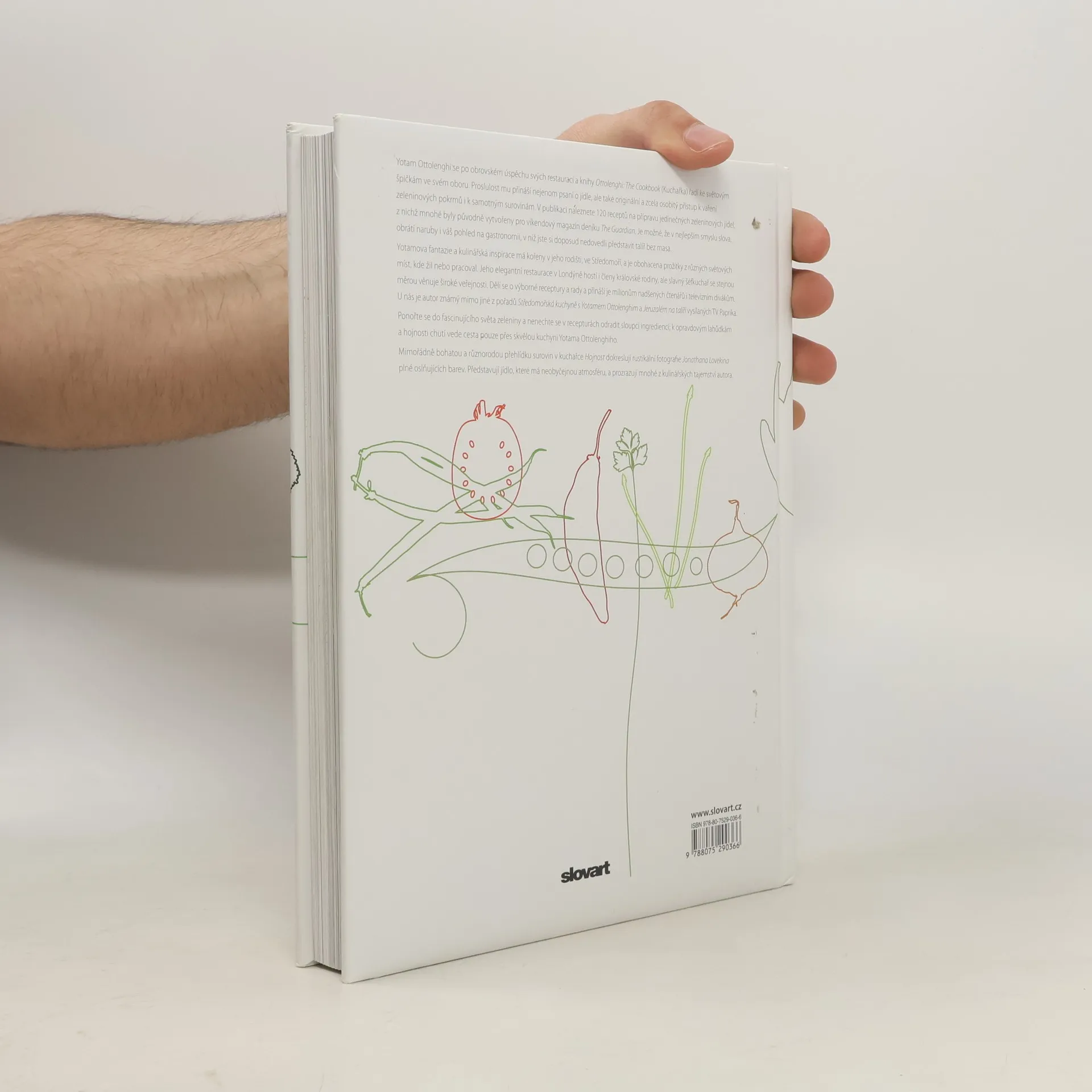 Kulinářské skvosty mistra zeleninové kuchyně. Yotam Ottolenghi se po úspěchu svých restaurací a knih řadí ke světovým kulinářským špičkám. Proslulost mu přináší nejenom psaní o jídle, ale také osobitý přístup k vaření zeleninových jídel. V publikaci naleznete 120 jedinečných zeleninových receptů. Je možné, že obrátí naruby i váš pohled na gastronomii, v níž jste si doposud nedovedli představit talíř bez masa. Yotamova fantazie a inspirace má kořeny v rodném prostředí, Středomoří, a je obohacena prožitky z různých světových míst, kde žil nebo pracoval. U nás je autor známý mimo jiné z pořadů Středomořská kuchyně s Yotamem Ottolenghim a Jeruzalém na talíři vysílanými TV Paprika. Ponořte se do fascinujícího světa zeleniny, k opravdovým lahůdkám a hojnosti chutí vede cesta pouze přes skvělou kuchyni Yotama Ottolenghiho.