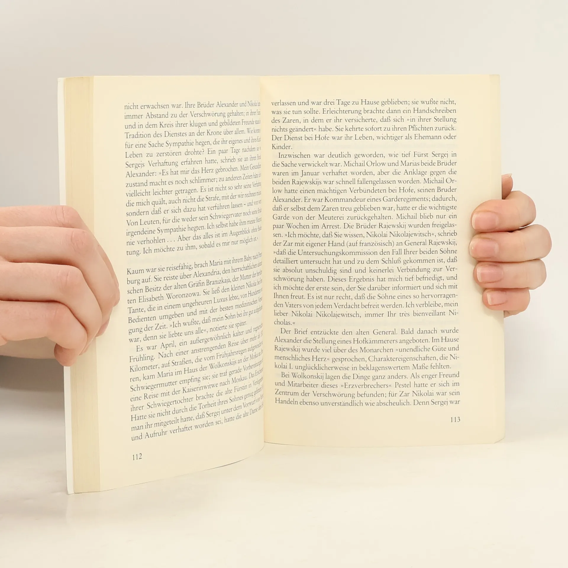 Im Dezember 1825 findet in Petersburg der Aufstand der Dekabristen statt, der von Nikolaus I. rasch niedergeschlagen wird. Die Verschwörer, Aristokraten und Angehörige der Garderegimenter, deren Ziel eine konstitutionelle Monarchie war, werden hingerichtet bzw. zu 20 Jahren Zwangsarbeit und lebenslanger Verbannung in Sibirien verurteilt. Unter ihnen Sergej Wolkonski, verheiratet mit Maria Rajewski, die beschließt, ihrem Mann in die Verbannung zu folgen. Zusammen mit anderen Frauen der Dekabristen setzt sie Erleichterungen für die Verurteilten durch, gründet Schulen für sibirische Bauernkinder, nimmt sich der Findelkinder an und sorgt später in Irkutsk für die Errichtung eines Theaters. Alle diese Wohltaten bringen ihr den Beinamen 'Prinzessin von Sibirien' ein. Als Alexander II. bei seinem Regierungsantritt im Jahr 1856 eine Amnestie erläßt, kehren die Wolkonskijs nach 30 Jahren Verbannung ins europäische Rußland zurück.