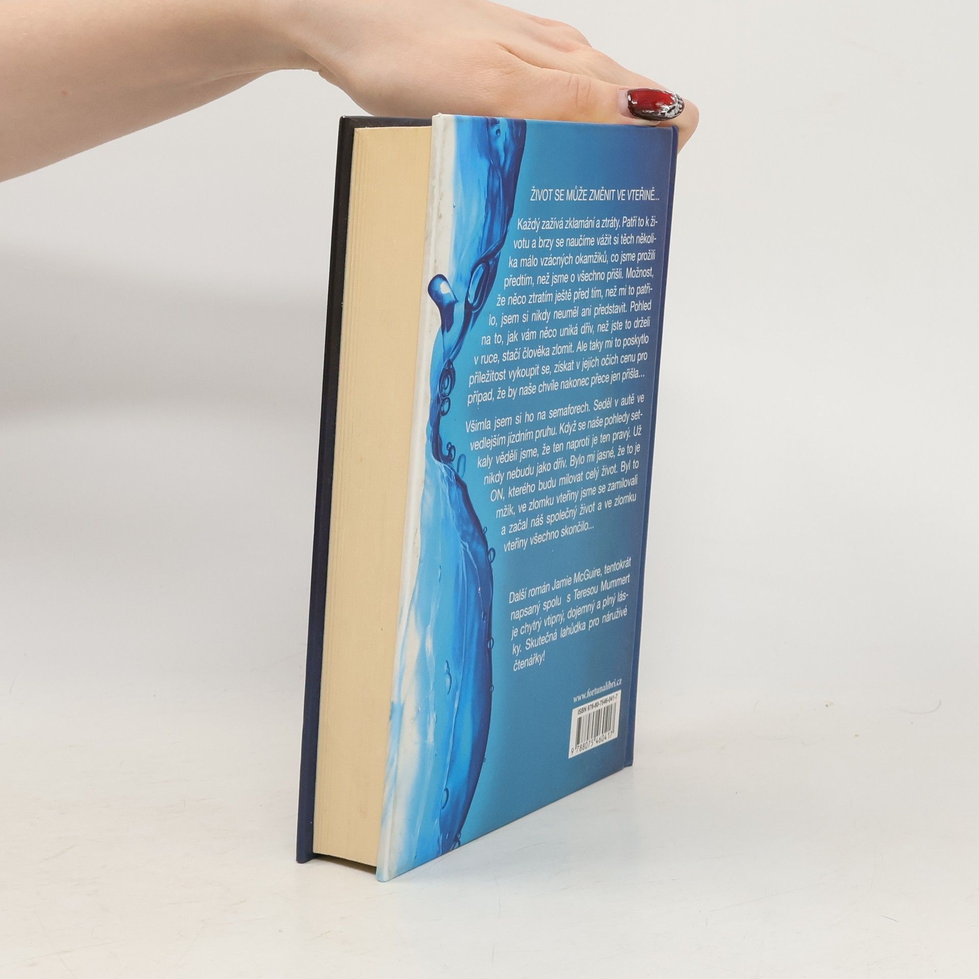 Život se může změnit ve vteřině ... Každý zažívá zklamání a ztráty. Patří to k životu a brzy se naučíme vážit si těch několika málo vzácných okamžiků, co jsme prožili předtím, než jsme o všechno přišli. Možnost, že něco ztratím ještě před tím, než mi to patřilo, jsem si nikdy neuměl ani představit. Pohled na to, jak vám něco uniká dřív, než jste to drželi v ruce, stačí člověka zlomit. Ale taky mi to poskytlo příležitost vykoupit se, získat v jejích očích cenu pro případ, že by naše chvíle nakonec přece jen přišla… Všimla jsem si ho na semaforech. Seděl v autě ve vedlejším jízdním pruhu. Když se naše pohledy setkaly, věděli jsme, že ten naproti je ten pravý. Už nikdy nebudu jako dřív. Bylo mi jasné, že to je ON, kterého budu milovat celý život. Byl to mžik, ve zlomku vteřiny jsme se zamilovali a začal náš společný život a ve zlomku vteřiny všechno skončilo ... Další román Jamie McGuire, tentokrát napsaný spolu s Teresou Mummert je chytrý vtipný, dojemný a plný lásky. Skutečná lahůdka pro náruživé čtenářky!