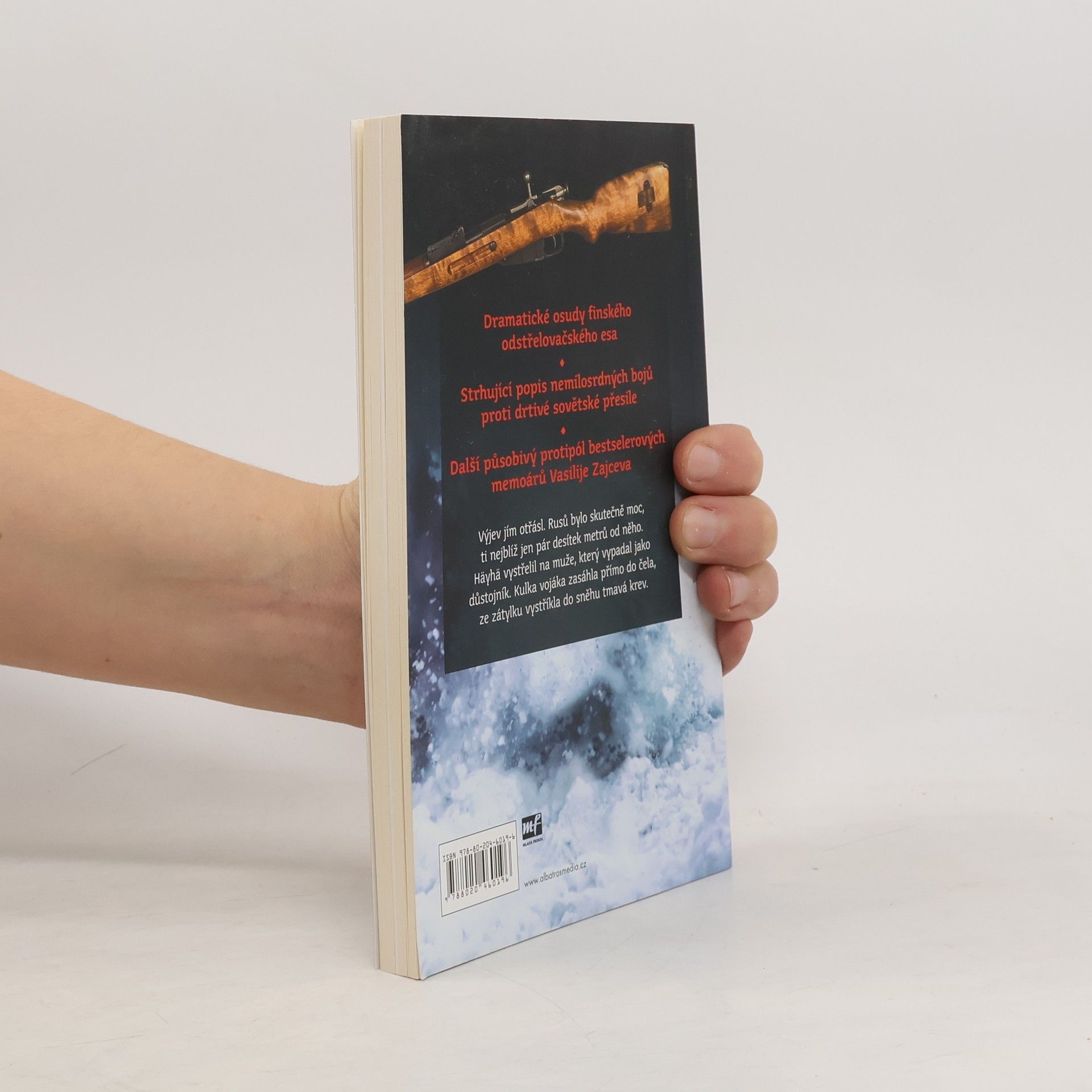 Životní příběh legendárního finského odstřelovače Sima Häyhäho (1905–2002), nenápadného, drobného chlapíka, který za Zimní války se Sovětským svazem výrazně zasáhl do těžkých bojů o řeku Kollaa. Jeho přesný, takřka neomylný střelecký um budil v řadách nepřítele oprávněnou hrůzu a vysloužil mu přezdívku Bílá smrt. Svými více než 500 prokázanými zásahy se zařadil mezi nejúspěšnější odstřelovače všech dob. Líčení osudů Sima Häyhäho je dalším působivým protipólem bestsellerových memoárů sovětského odstřelovače Vasilije Zajceva.