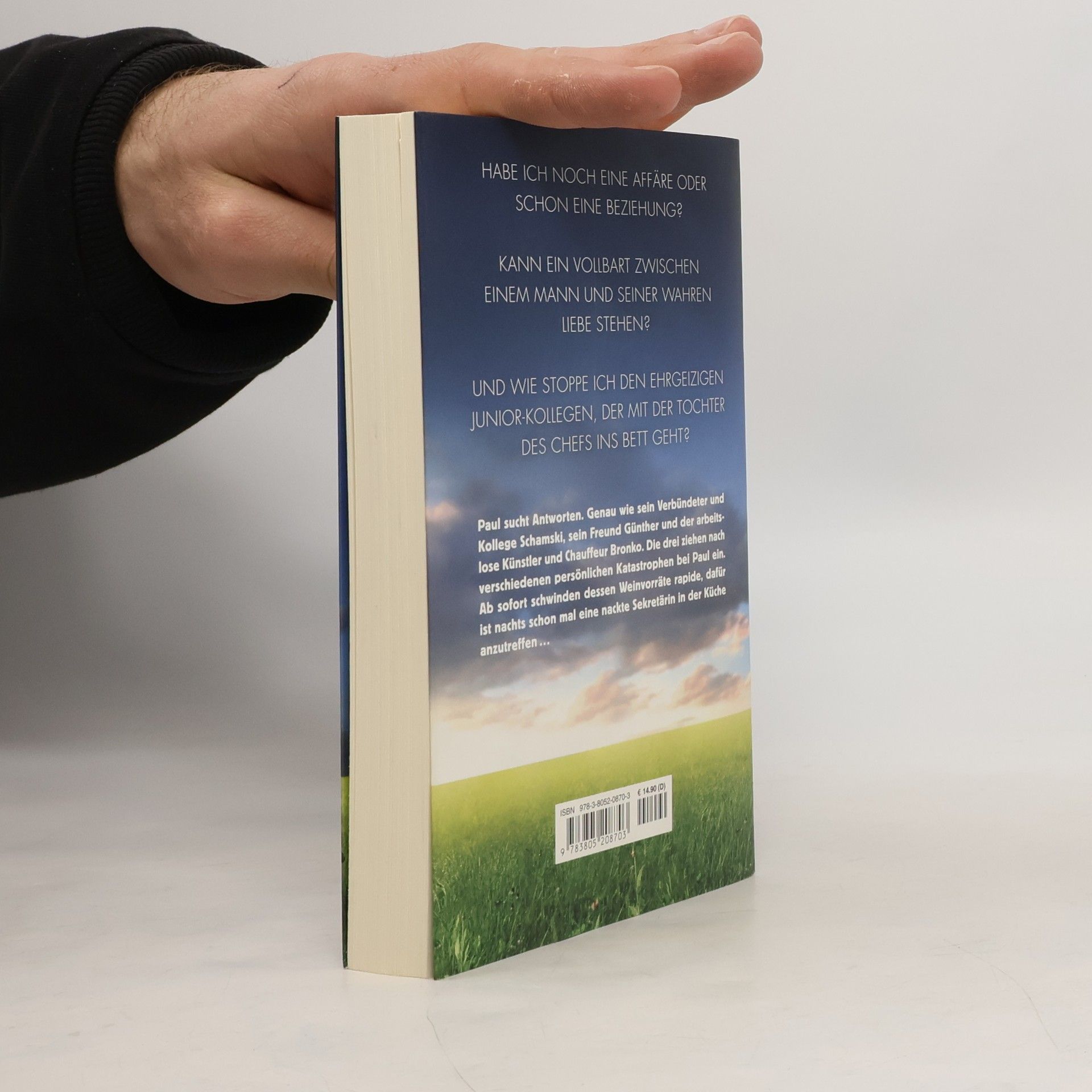 Habe ich noch eine Affäre oder schon eine Beziehung?Kann ein Vollbart zwischen einem Mann und seiner wahren Liebe stehen?Und wie stoppe ich den ehrgeizigen Junior-Kollegen, der mit der Tochter des Chefs ins Bett geht?Paul sucht Antworten. Genau wie sein Verbündeter und Kollege Schamski, sein Freund Günther und der arbeitslose Künstler und Chauffeur Bronko. Die drei ziehen nach verschiedenen persönlichen Katastrophen bei Paul ein. Ab sofort schwinden dessen Weinvorräte rapide, dafür ist nachts schon mal eine nackte Sekretärin in der Küche anzutreffen …