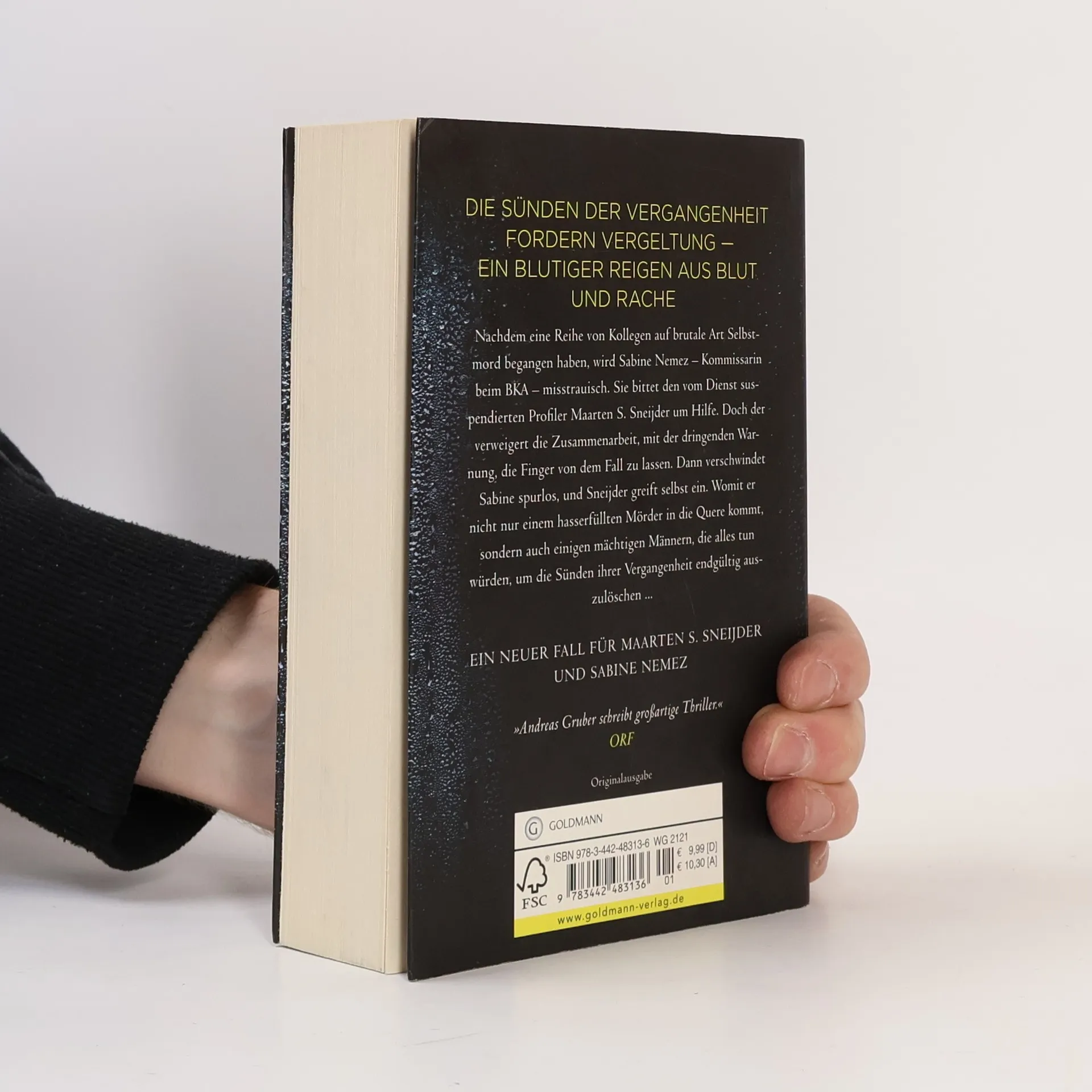 Sneijder und Nemez ermitteln wieder. Nachdem eine Reihe von Kollegen auf brutale Art Selbstmord begangen haben, wird Sabine Nemez – Kommissarin und Ausbilderin beim BKA – misstrauisch. Vieles weist auf eine jahrzehntealte Verschwörung und deren von Rache getriebenes Opfer hin. Sabine bittet ihren ehemaligen Kollegen, den vom Dienst suspendierten Profiler Maarten S. Sneijder, um Hilfe. Doch der verweigert die Zusammenarbeit, mit der dringenden Warnung, die Finger von dem Fall zu lassen. Dann verschwindet Sabine spurlos, und Sneijder greift selbst ein. Womit er nicht nur einem hasserfüllten Mörder in die Quere kommt, sondern auch seinen einstigen Freunden und Kollegen, die alles tun würden, um die Sünden ihrer Vergangenheit endgültig auzulöschen ... Der vierte Fall für Sneijder und Nemez.