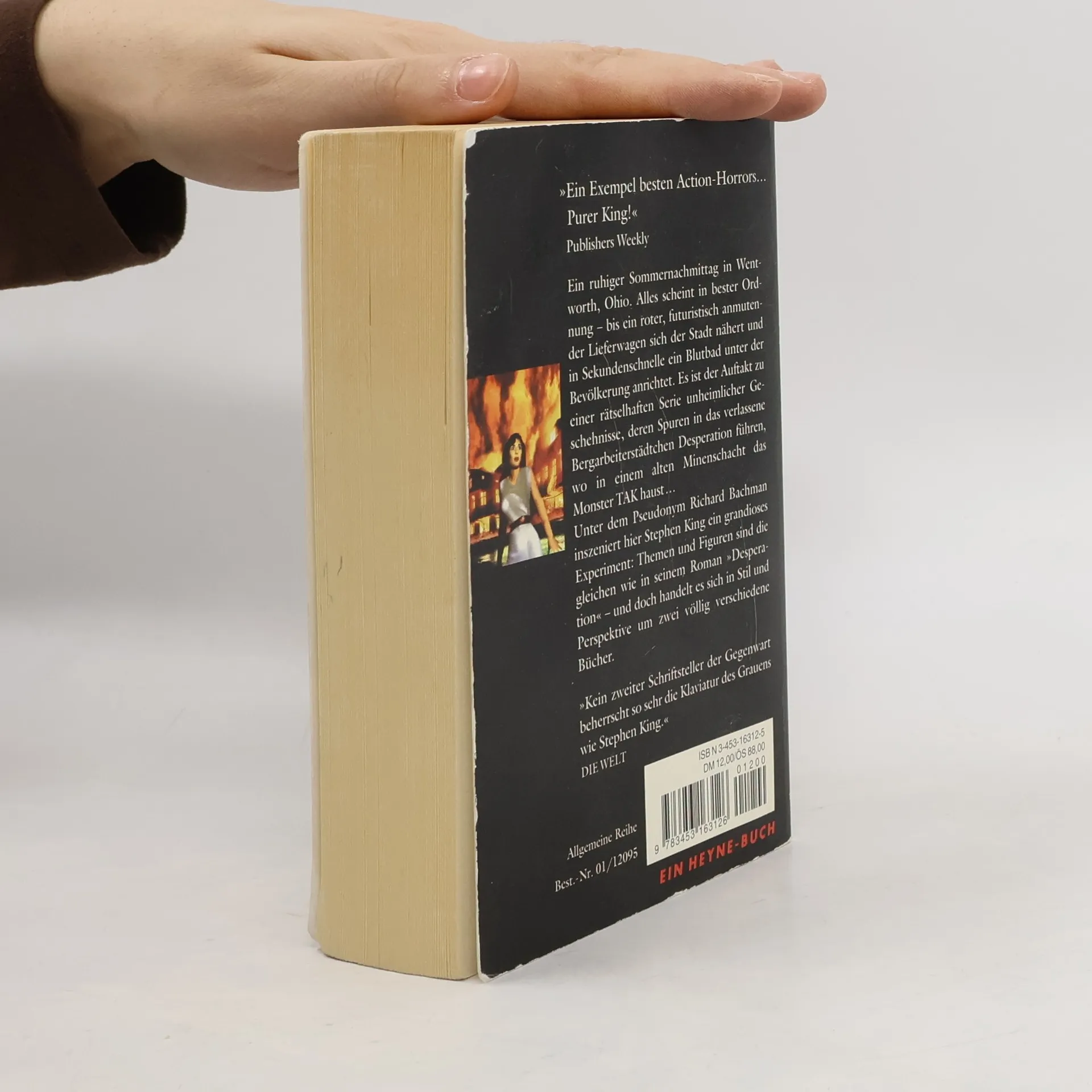 An einem ruhigen Sommernachmittag tauchen in einem verschlafenen Städtchen futuritisch anmutende Lieferwagen auf. Ohne jede Vorwarnung richten sie ein furchtbares Blutbad an. Panik macht sich breit, doch bald müssen die Überlebenden feststellen, daß dies nur der Auftakt zu einem schrecklichen Alptraum war. Ein Horrorroman, von Stephen King unter seinem alten Pseudonym verfaßt.