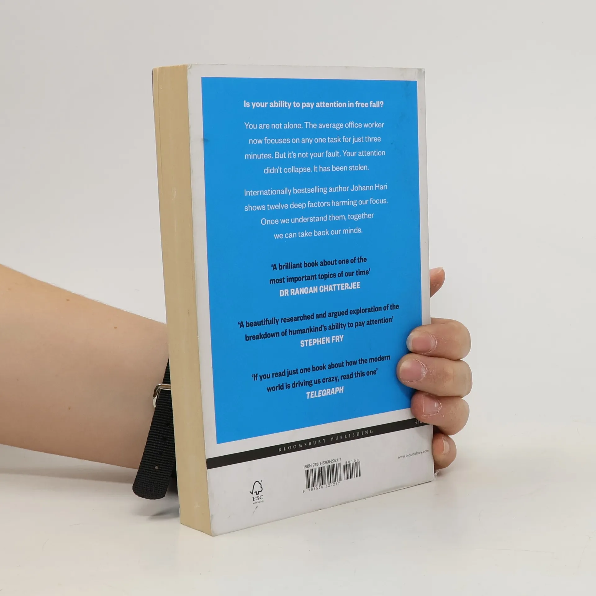 THE SUNDAY TIMES AND NEW YORK TIMES BESTSELLERA SPECTATOR AND FINANCIAL TIMES BEST BOOK OF 2022A WATERSTONES NON-FICTION BOOK OF THE MONTH'If you read just one book about how the modern world is driving us crazy, read this one' TELEGRAPH'This book is exactly what the world needs right now' OPRAH WINFREY'A beautifully researched and argued exploration of the breakdown of humankind's ability to pay attention' STEPHEN FRY'A really important book . . . Everyone should read it' PHILIPPA PERRY---Is your ability to focus and pay attention in free fall?You are not alone. The average office worker now focuses on any one task for just three minutes. But it's not your fault. Your attention didn't collapse. It has been stolen.Internationally bestselling author Johann Hari shows twelve deep factors harming our focus. Once we understand them, together, we can take back our minds.