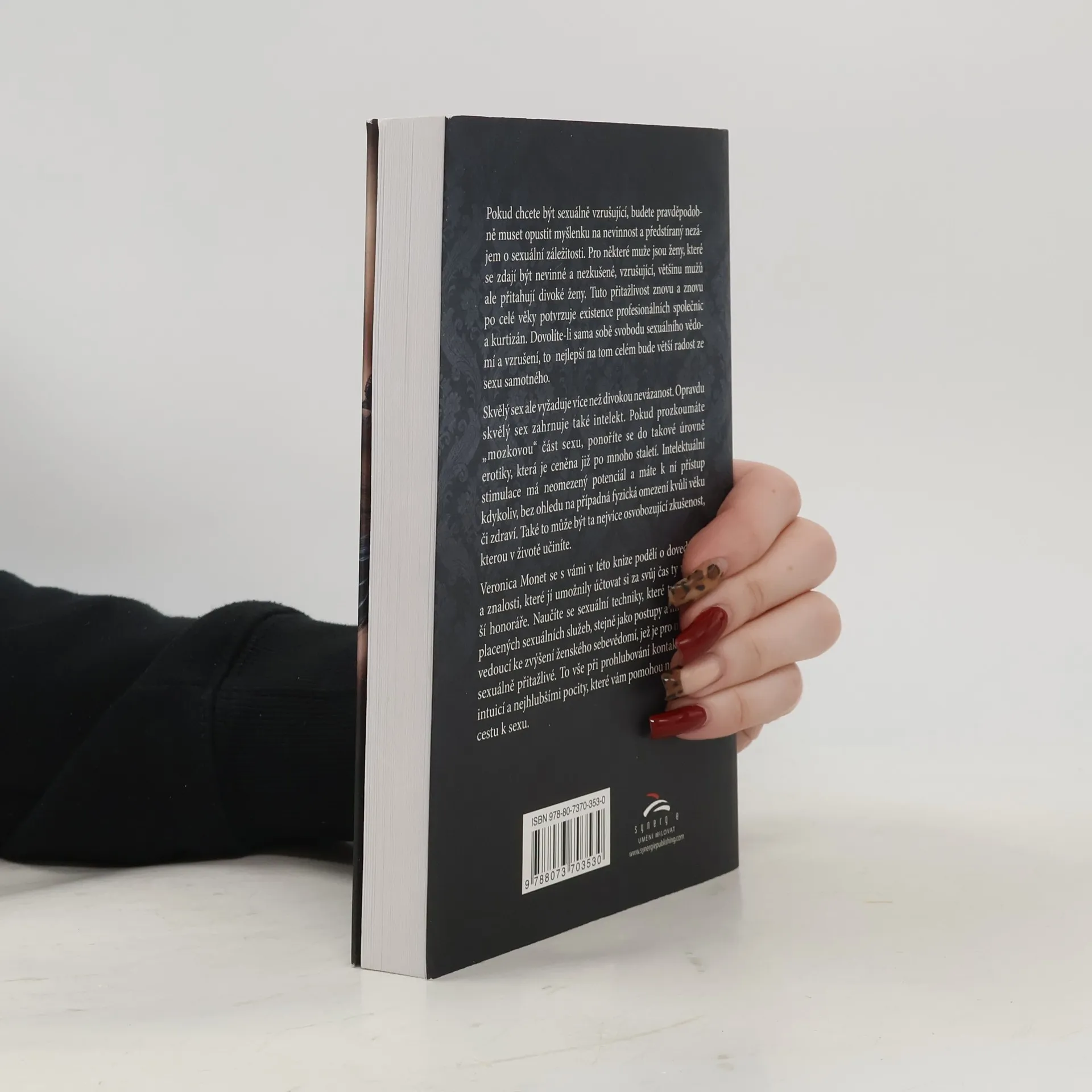 Veronica Monet se s vámi v této knize podělí o dovednosti a znalosti, které jí umožnily účtovat si za svůj čas ty nejvyšší honoráře. Naučíte se sexuální techniky, které tvoří jádro placených sexuálních služeb, stejně jako postupy a informace vedoucí ke zvýšení ženského sebevědomí, jež je pro muže tak sexuálně přitažlivé. To vše při prohlubování kontaktu s vaší intuicí a nejhlubšími pocity, které vám pomohou najít vlastní cestu k sexu. Pokud chcete být sexuálně vzrušující, budete pravděpodobně muset opustit myšlenku na nevinnost a předstíraný nezájem o sexuální záležitosti. Pro některé muže jsou ženy, které se zdají být nevinné a nezkušené, vzrušující, většinu mužů ale přitahují divoké ženy. Tuto přitažlivost znovu a znovu po celé věky potvrzuje existence profesionálních společnic a kurtizán. Dovolíte-li sama sobě svobodu sexuálního vědomí a vzrušení, to nejlepší na tom celém bude větší radost ze sexu samotného.